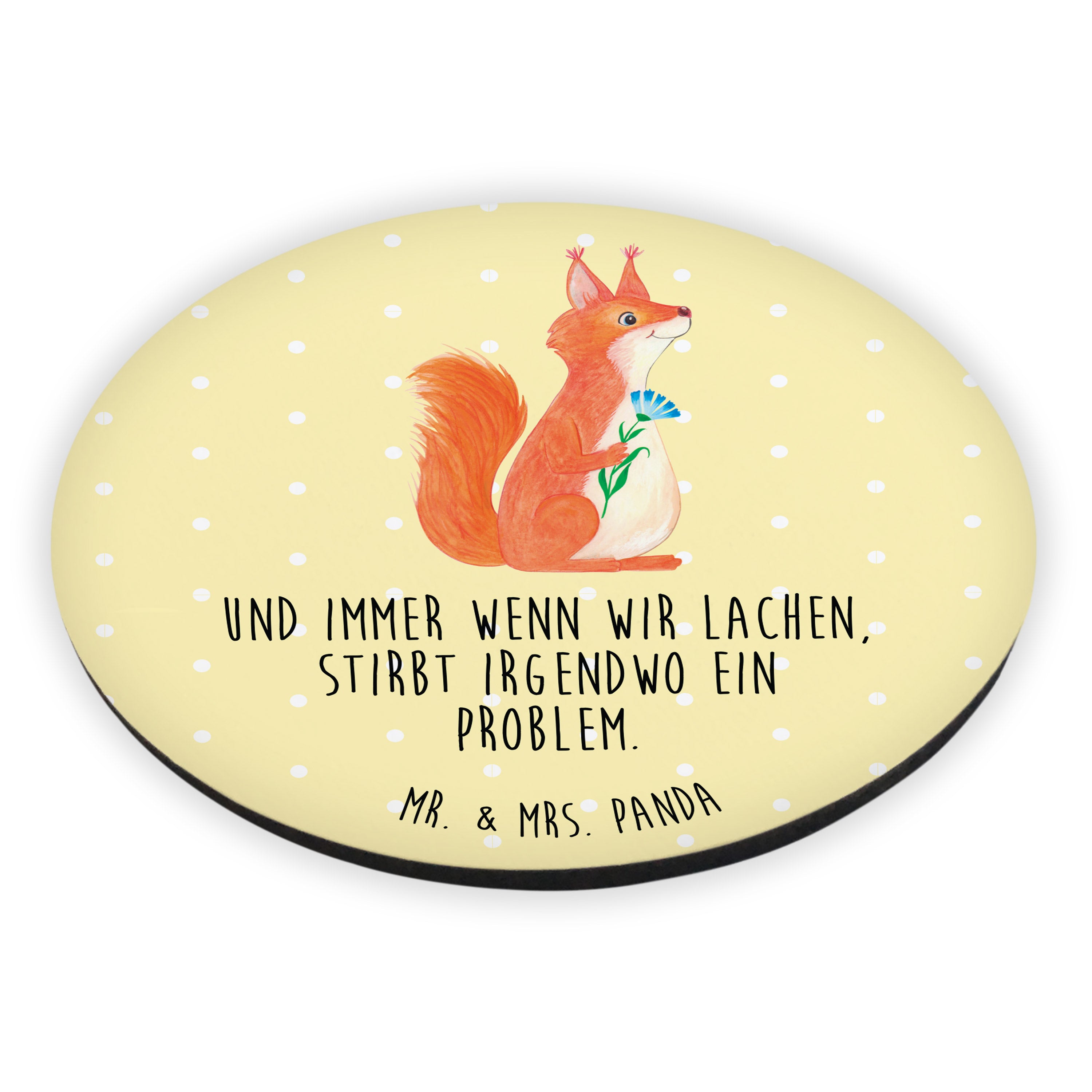Rund Magnet Eichhörnchen Blume - mit Spruch - Gelb Pastell