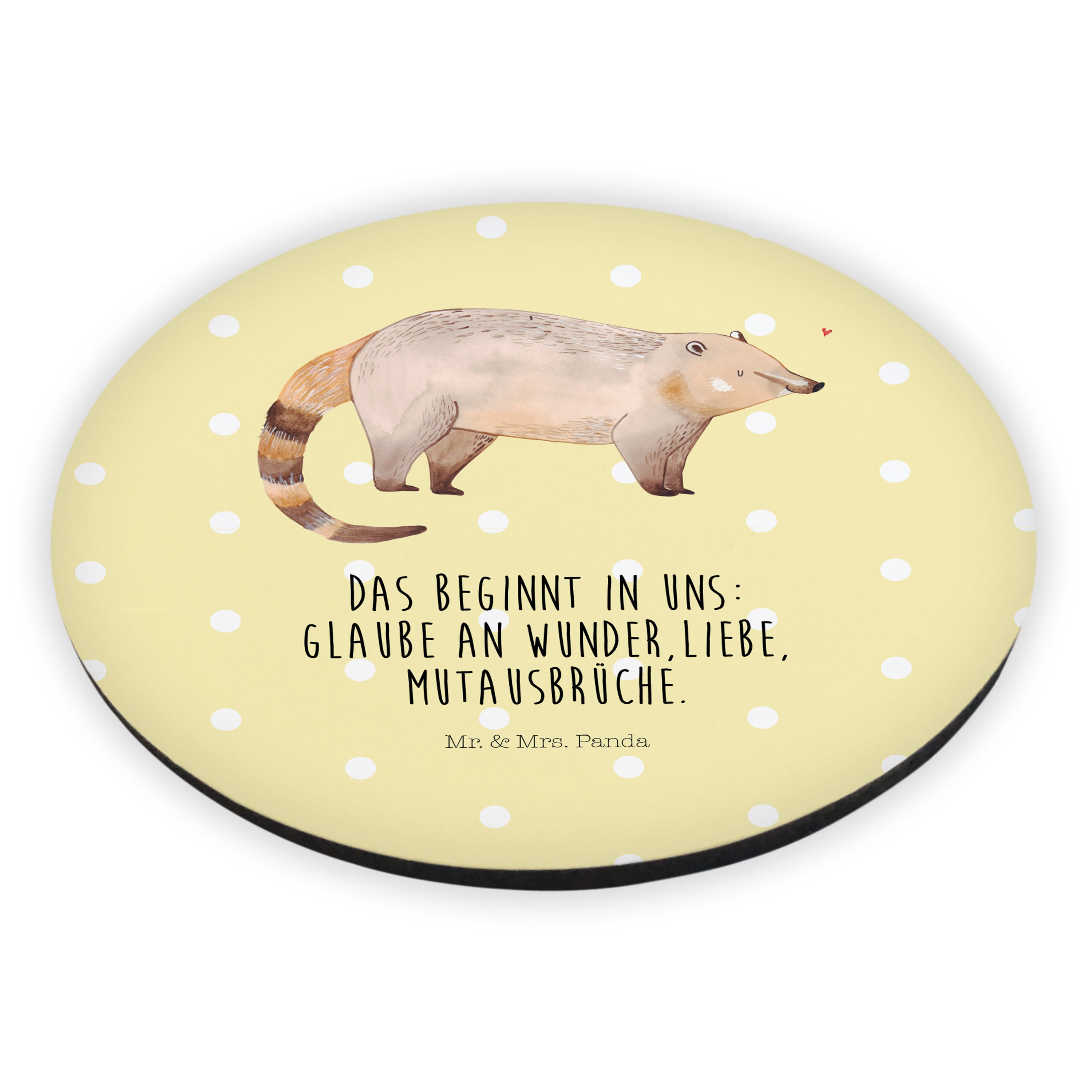Rund Magnet Nasenbaer - mit Spruch - Gelb Pastell
