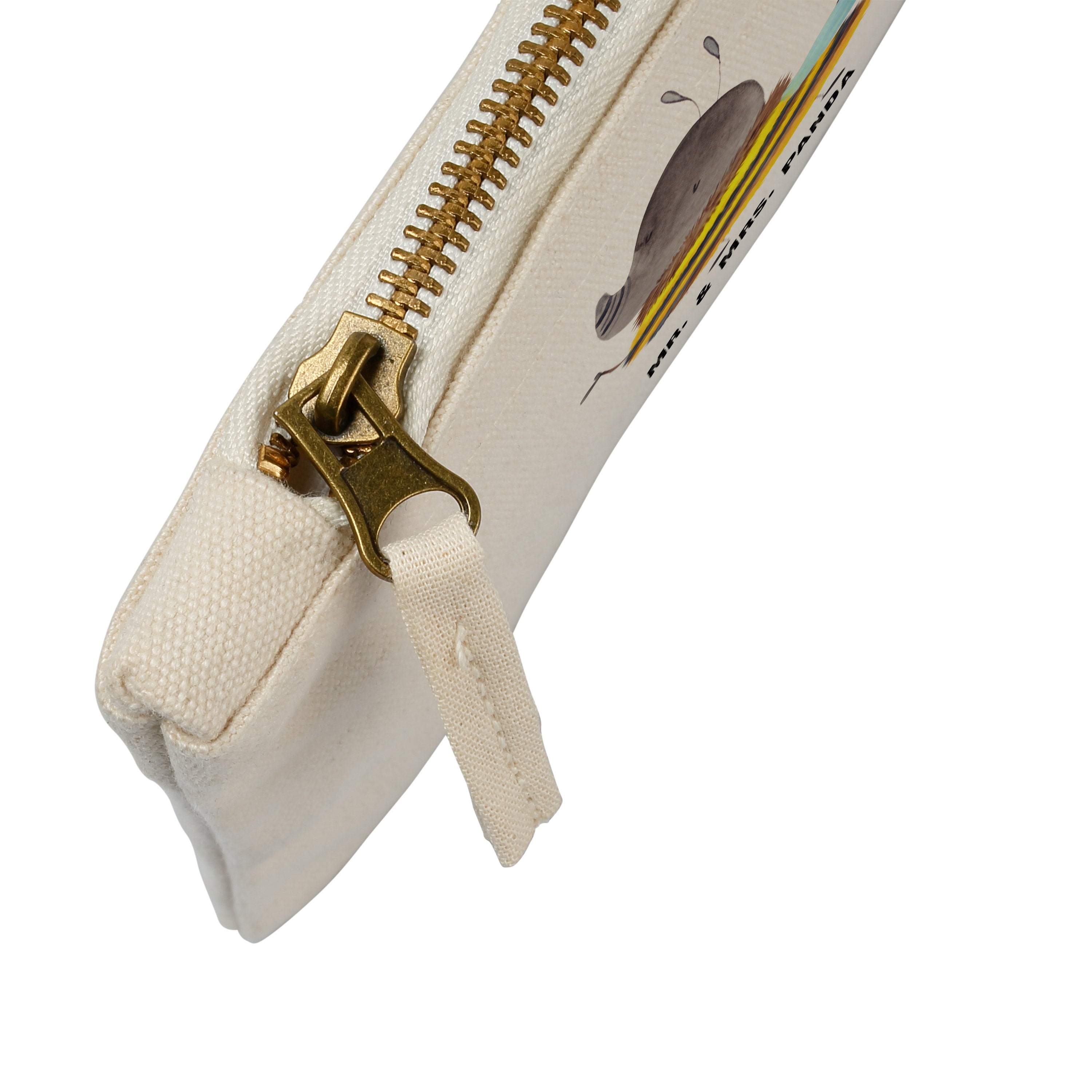 Eine wunderschöne Schminktasche von Mr. & Mrs. Panda mit Reißverschlussfach. Diese Kosmetiktasche oder Kosmetikbeutel ist aus 100% Baumwolle und bedruckt mit unseren wunderschönen handgezeichneten Motiven. Hol dir dieses einzigartige Etui direkt nach Hause - du kannst die Tasche auch perfekt als Stiftemäppchen, Federmappe, Schlamper oder Etui verwenden.
