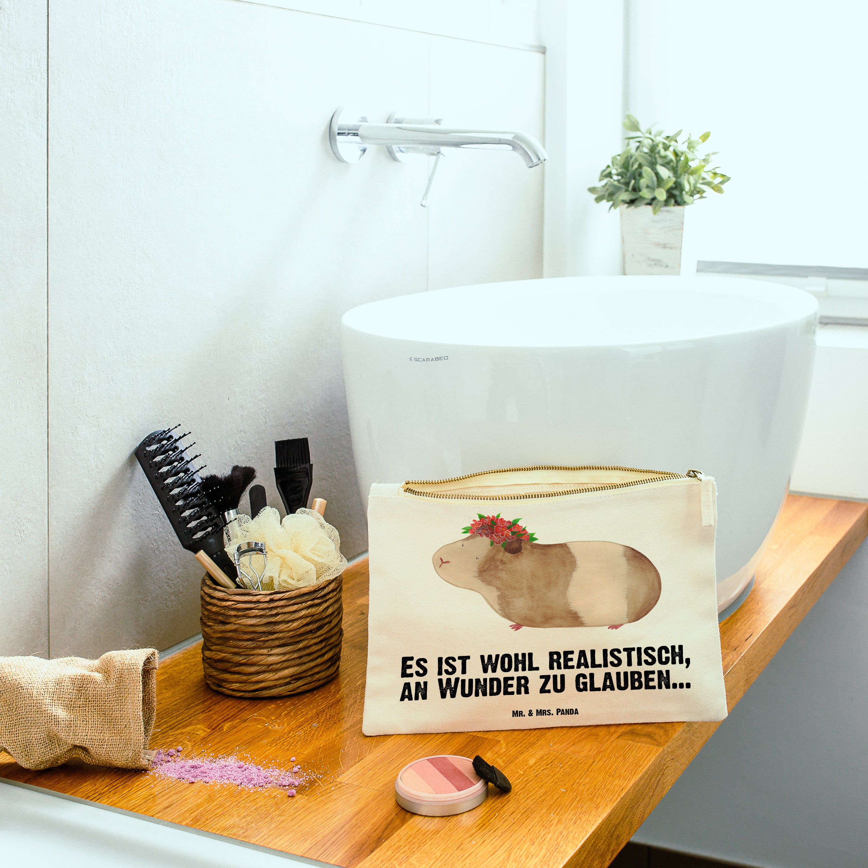 Schminktasche Meerschweinchen weise - Grösse XL Große - mit Spruch