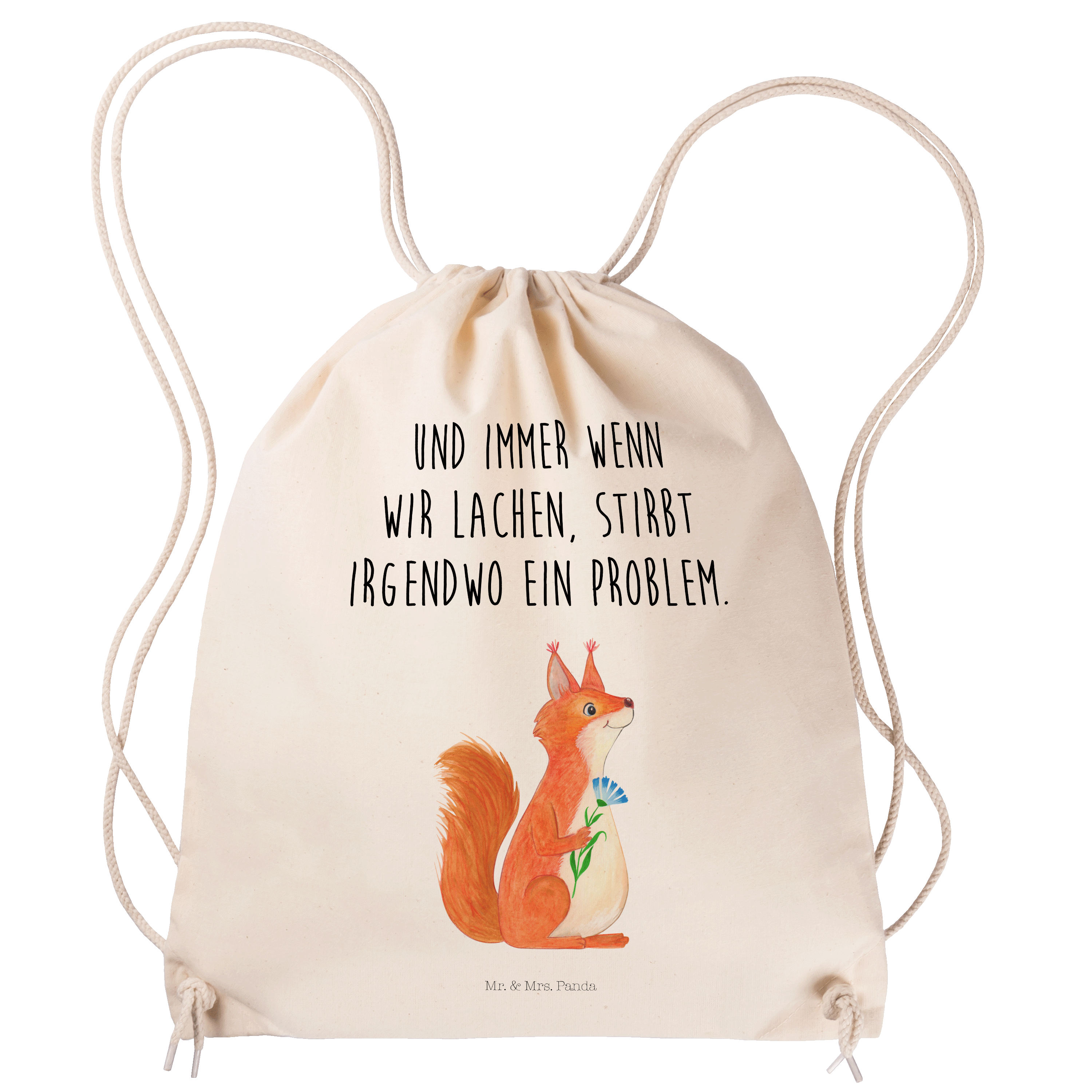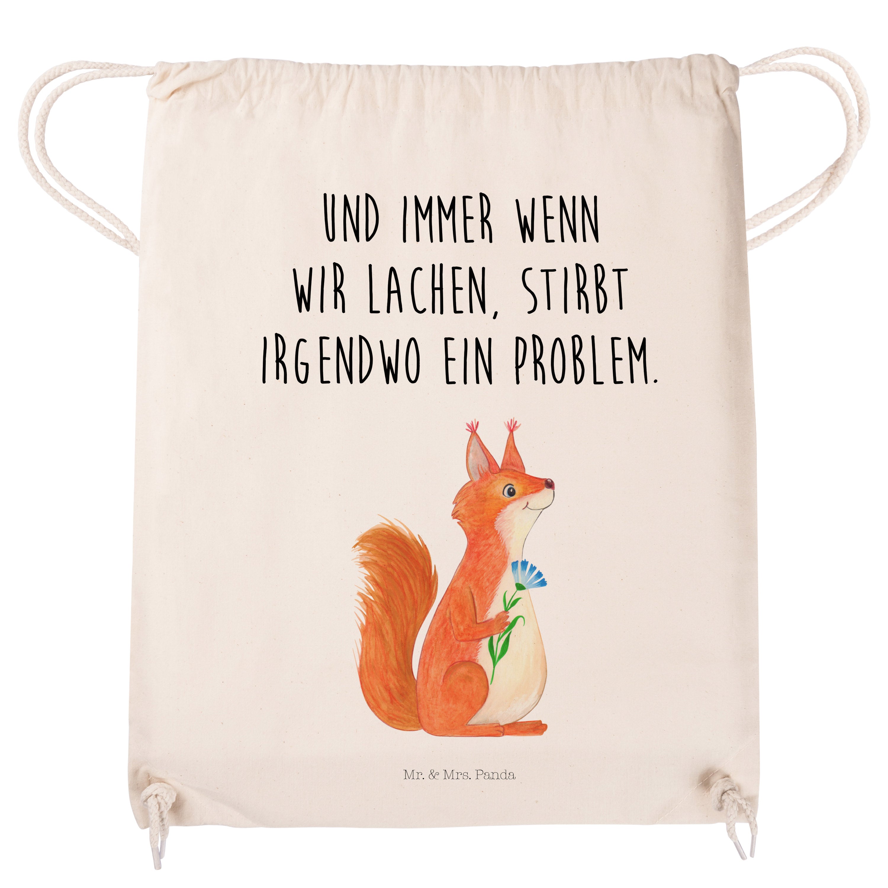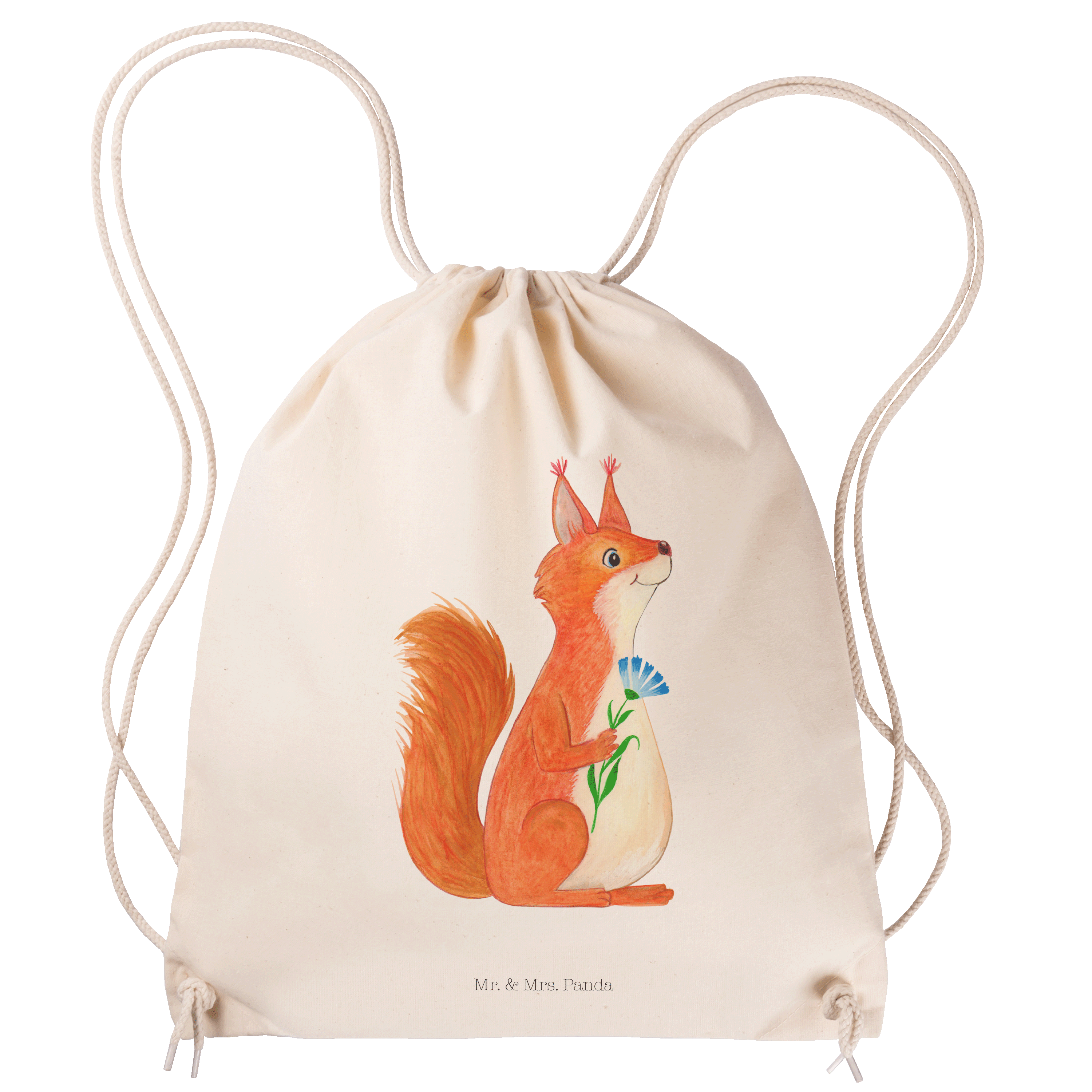 Sportbeutel Eichhörnchen Blume - mit Spruch - Transparent
