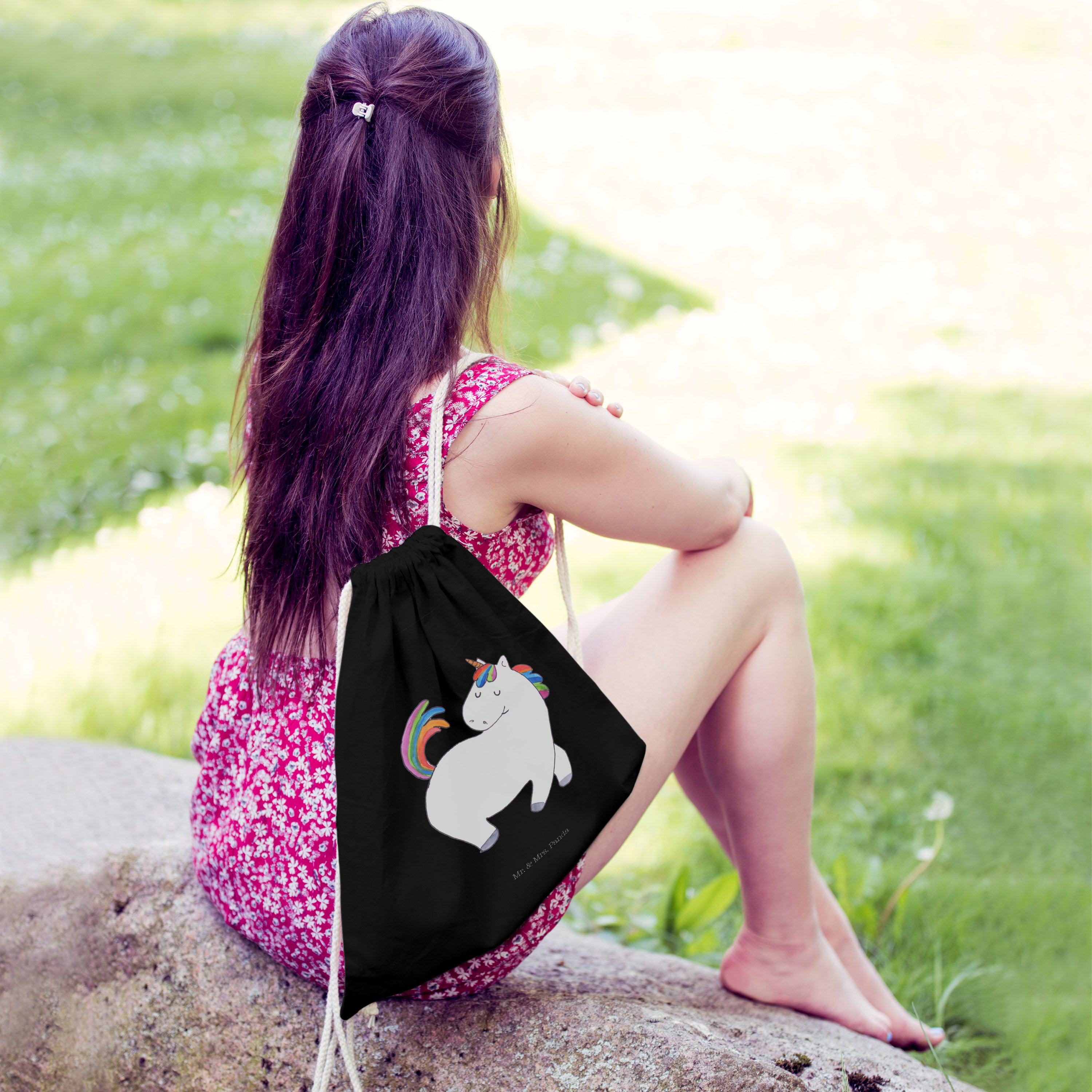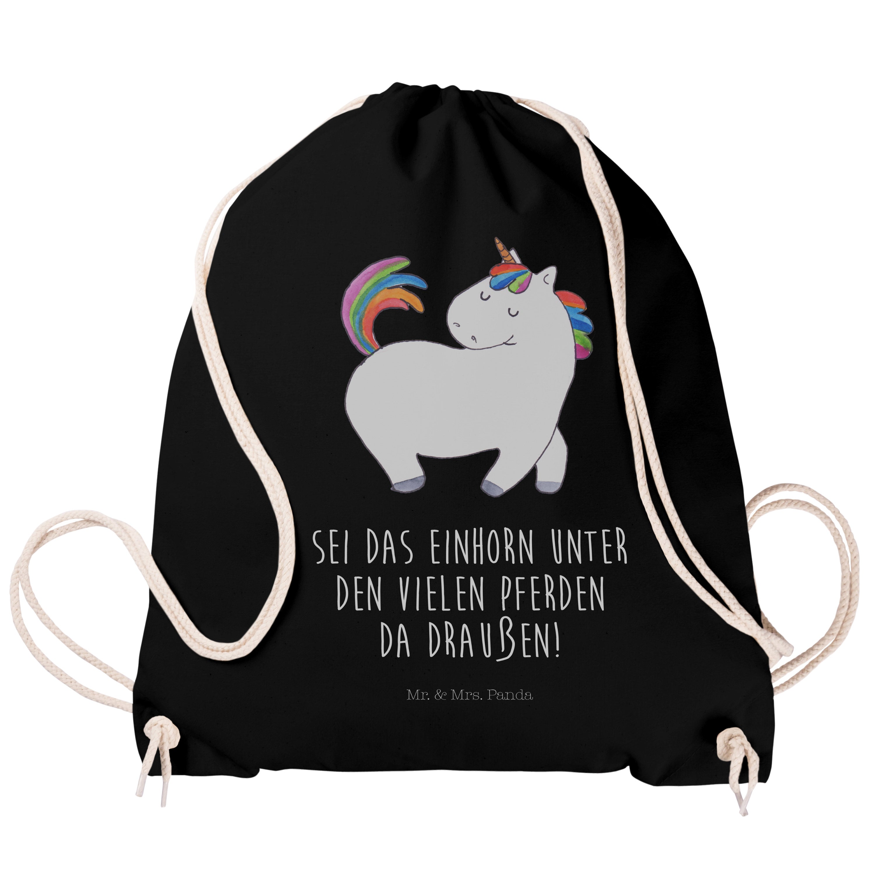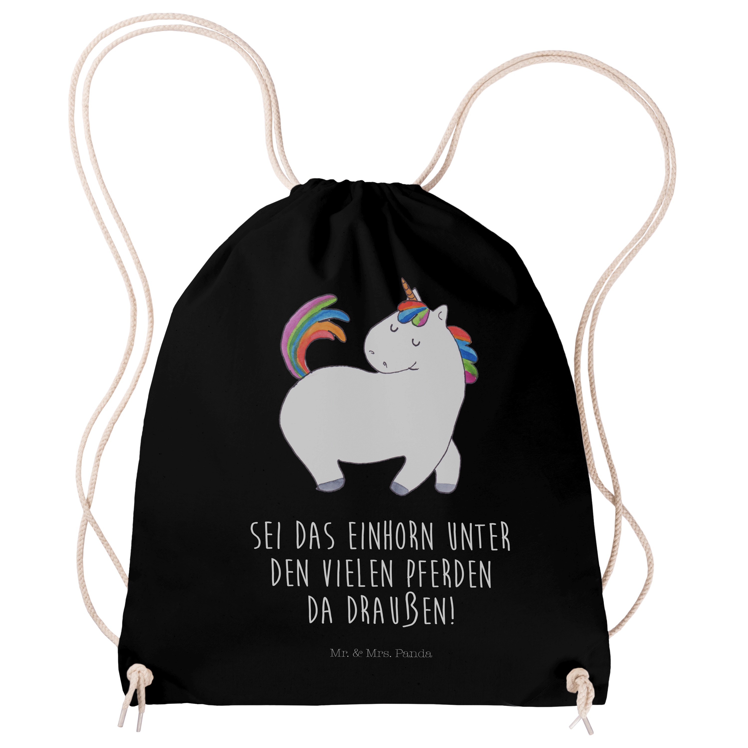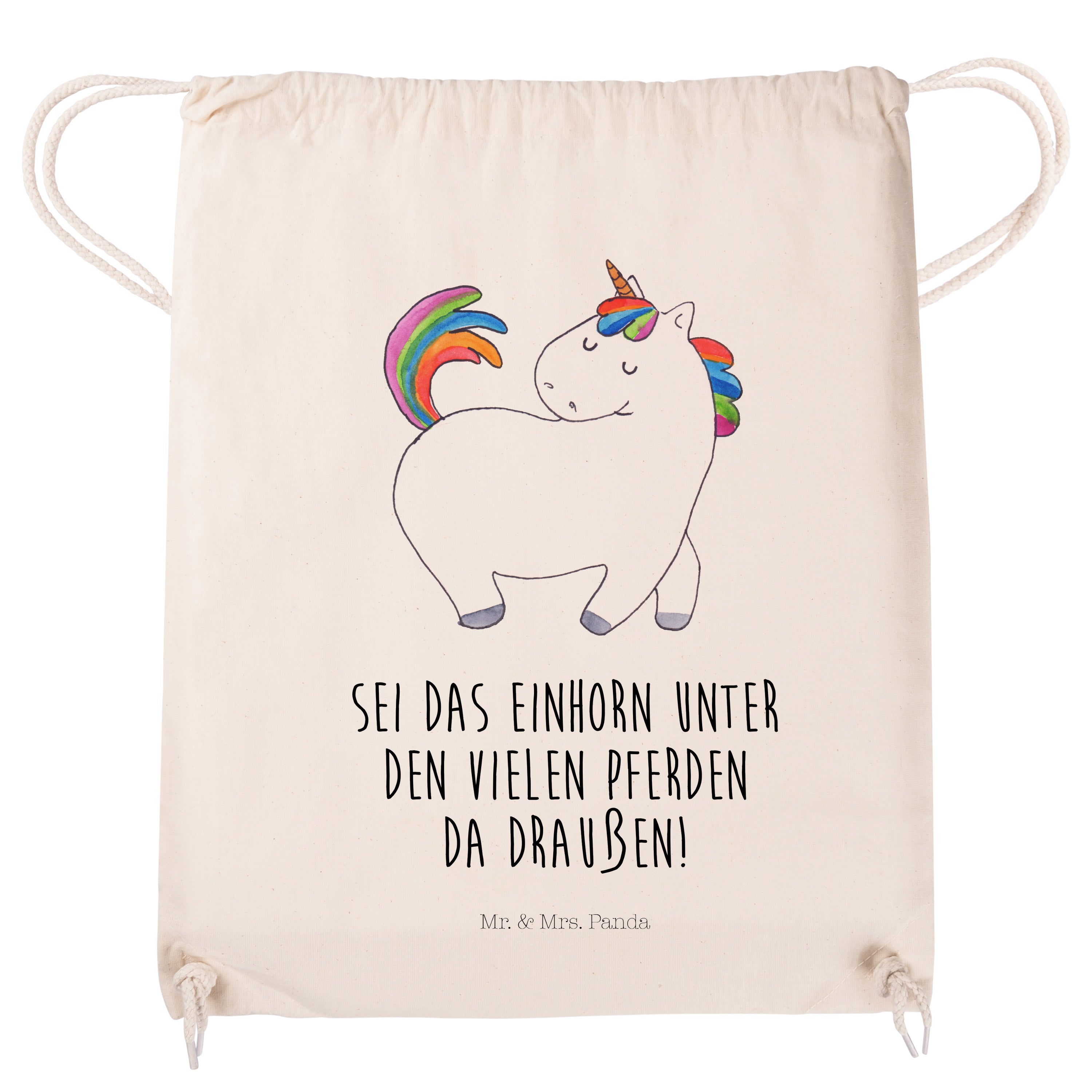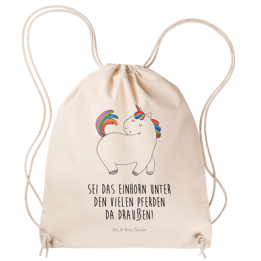 Sportbeutel Einhorn stolzierend - mit Spruch - Transparent