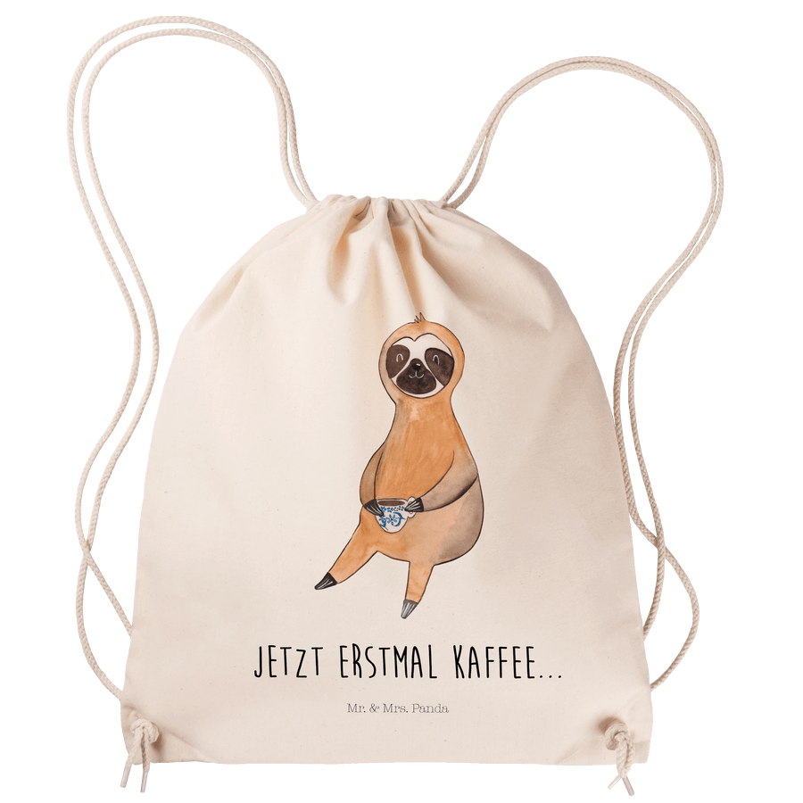 Sportbeutel Faultier Kaffee - mit Spruch - Transparent