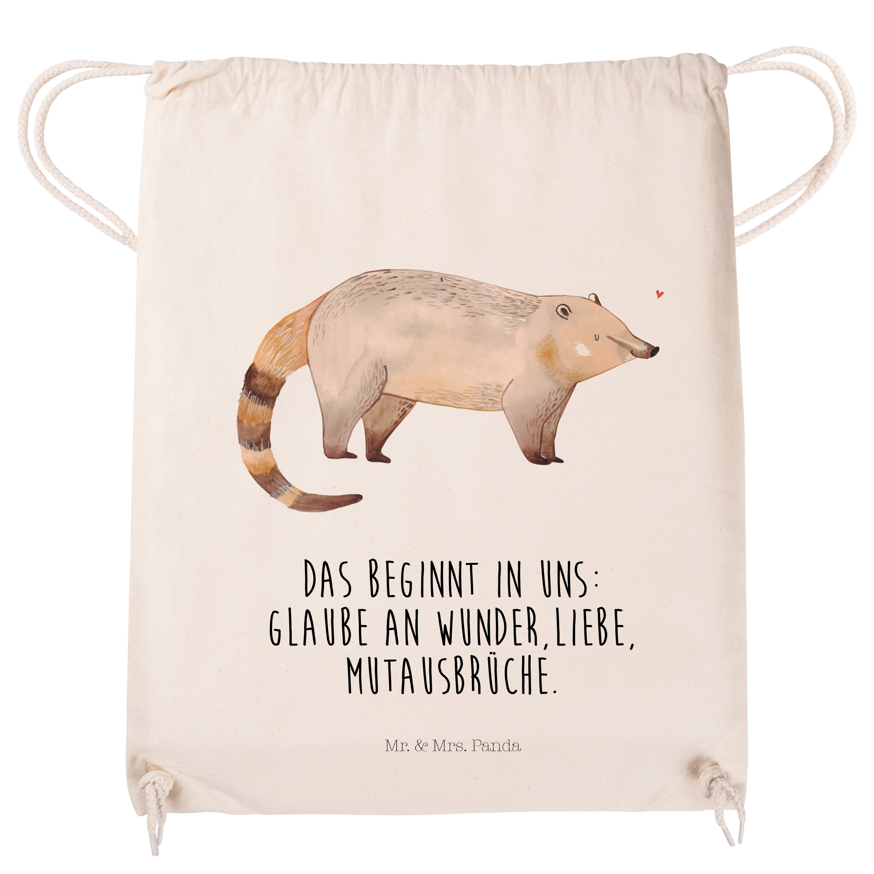 Sportbeutel Nasenbär - mit Spruch - Transparent
