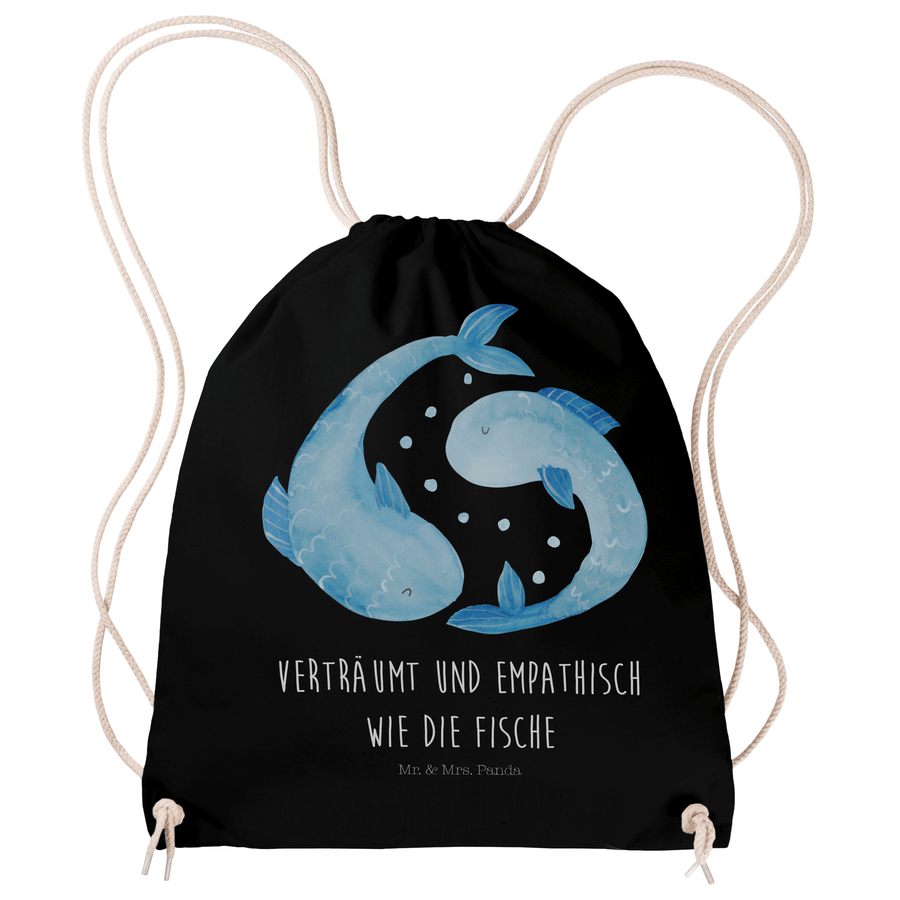Sportbeutel Sternzeichen Fische - mit Spruch - Schwarz