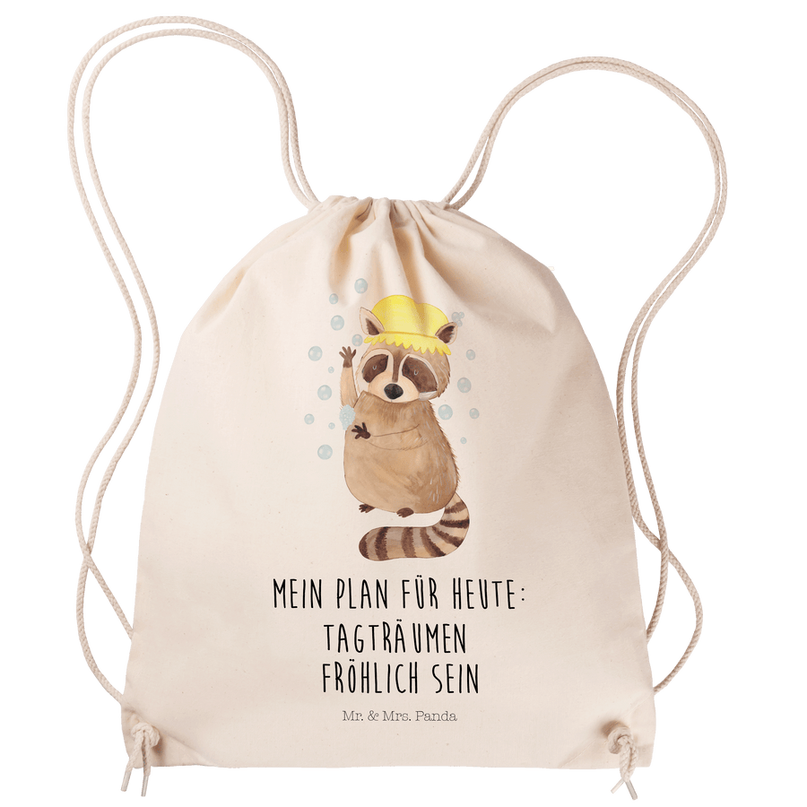Sportbeutel Waschbär Turnbeutel, Beutel, Sporttasche, Tasche, Stoffbeutel, Tiermotive, Gute Laune, lustige Sprüche, Tiere, Waschbär, Tagträumen, Plan, Fröhlich, waschen, Seifenblasen
