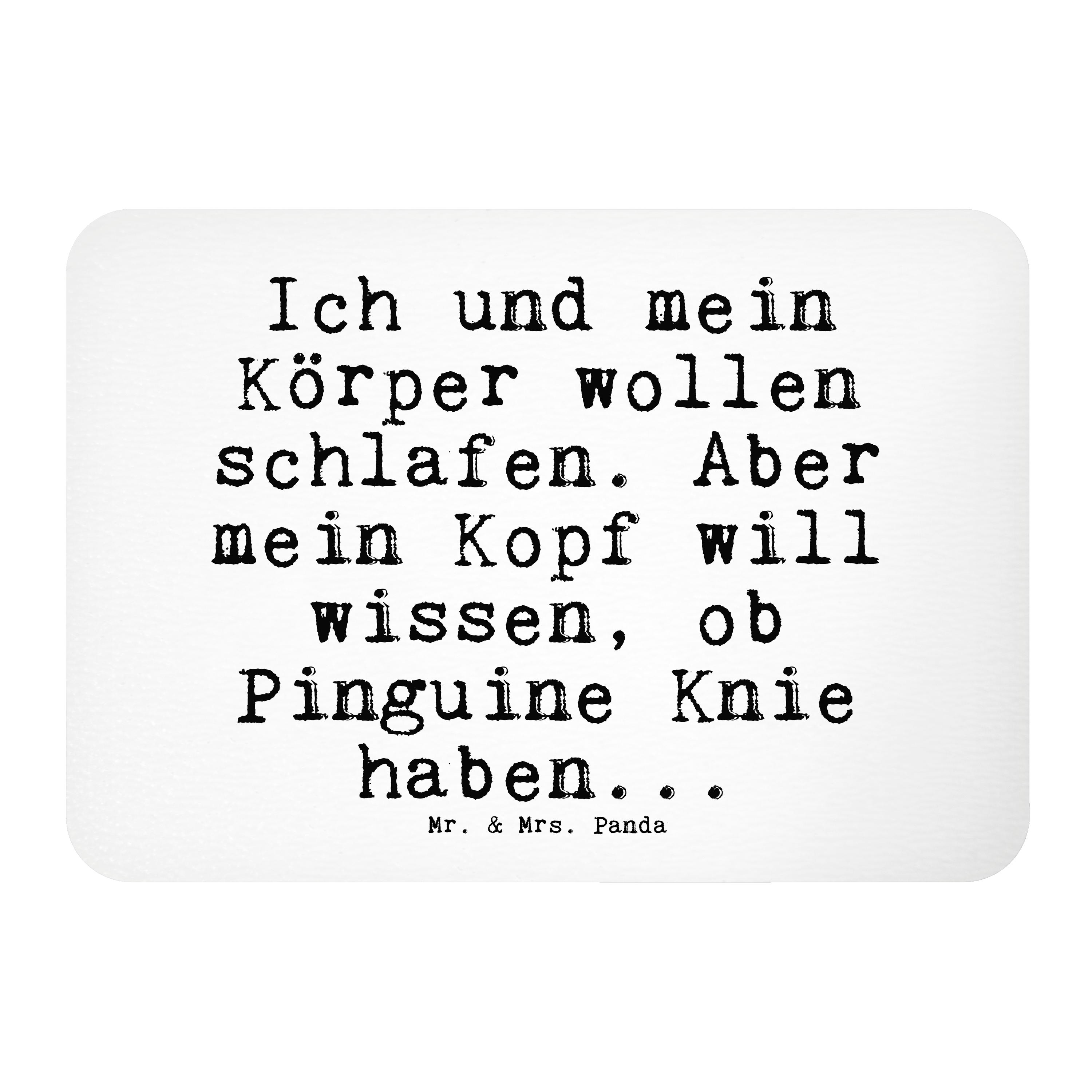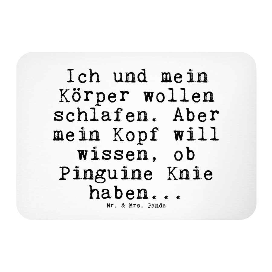 Magnet Sprüche und Zitate Ich und mein Körper wollen schlafen. Aber mein Kopf will wissen, ob Pinguine Knie haben...