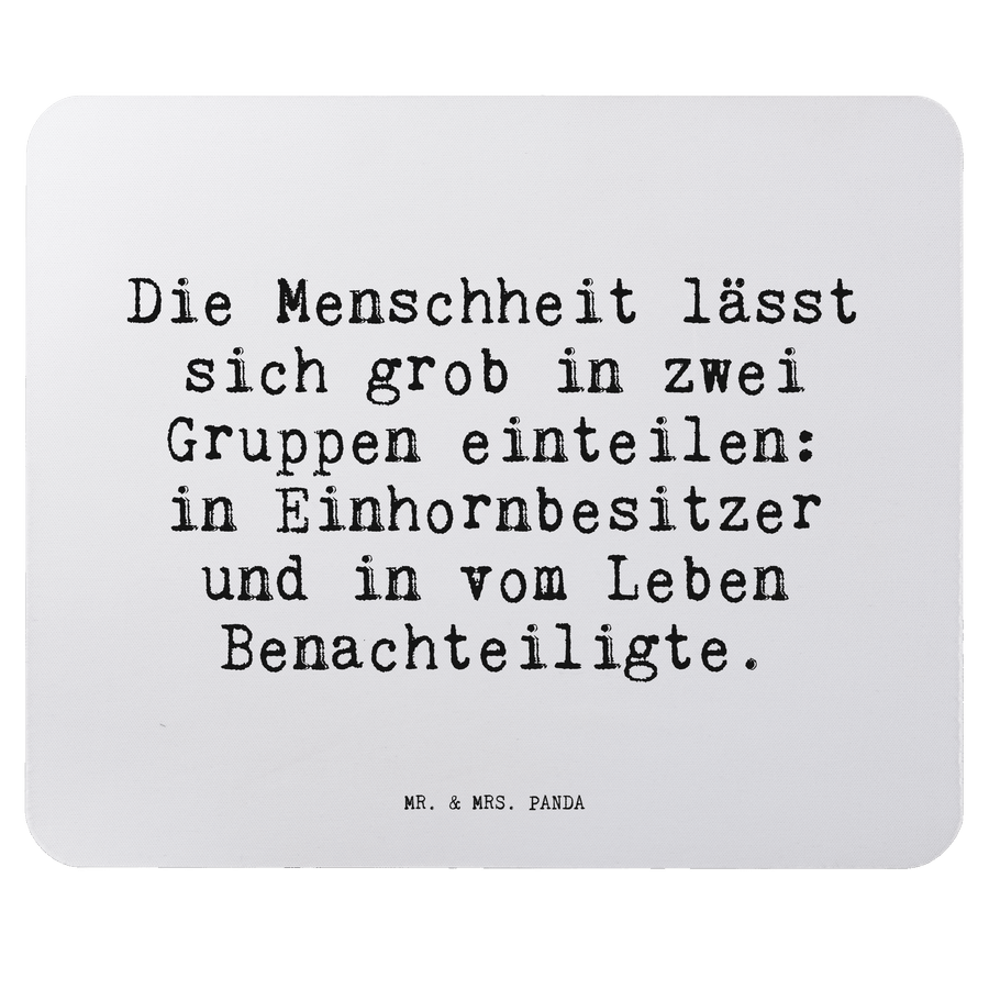 Mauspad Sprüche und Zitate Die Menschheit lässt sich grob in zwei Gruppen einteilen: in Einhornbesitzer und in vom Leben Benachteiligte.