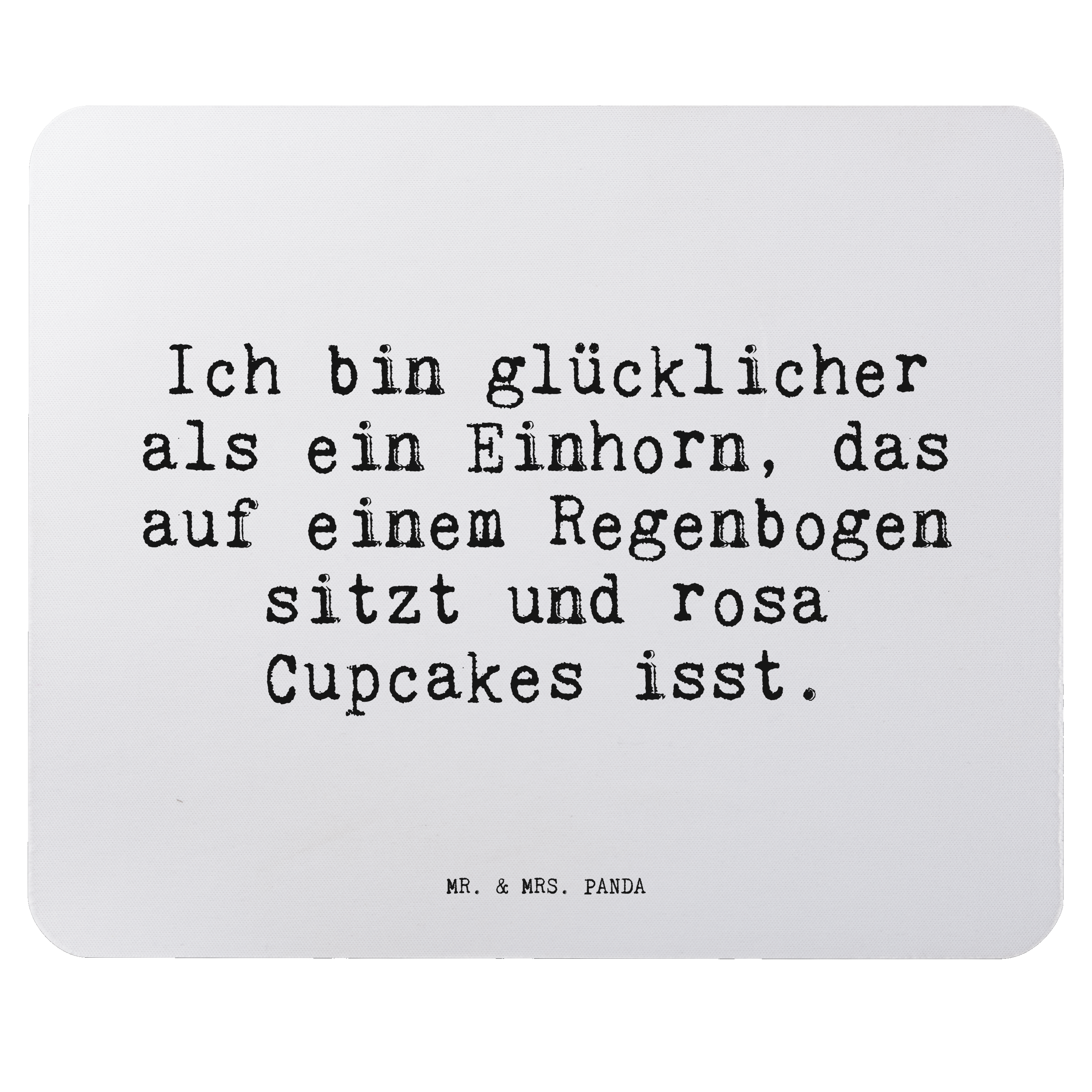 Mauspad Sprüche und Zitate Ich bin glücklicher als ein Einhorn, das auf einem Regenbogen sitzt und rosa Cupcakes isst.