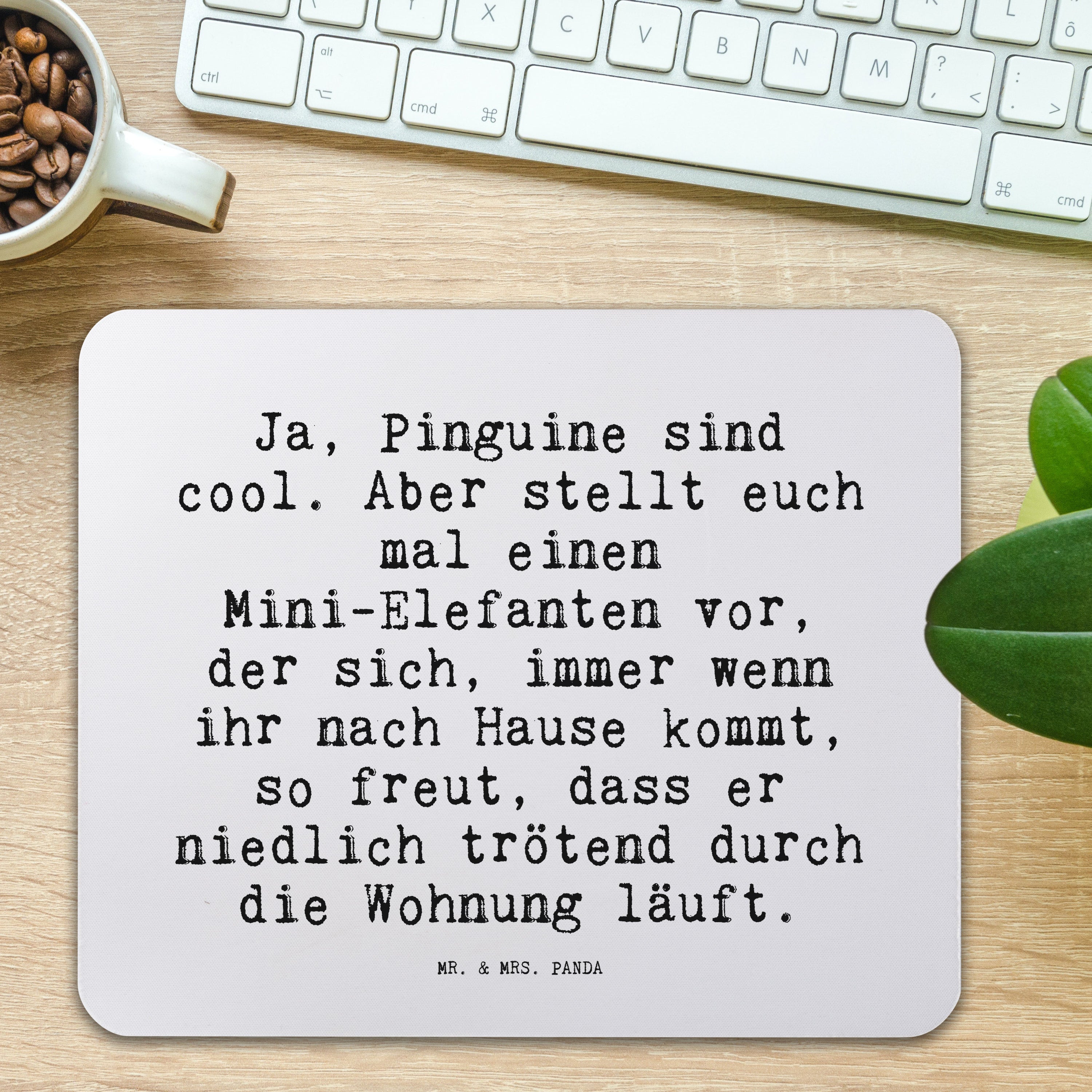 Mauspad Sprüche und Zitate Ja, Pinguine sind cool. Aber stellt euch mal einen Mini-Elefanten vor, der sich, immer wenn ihr nach Hause kommt, so freut, dass er niedlich trötend durch die Wohnung läuft.