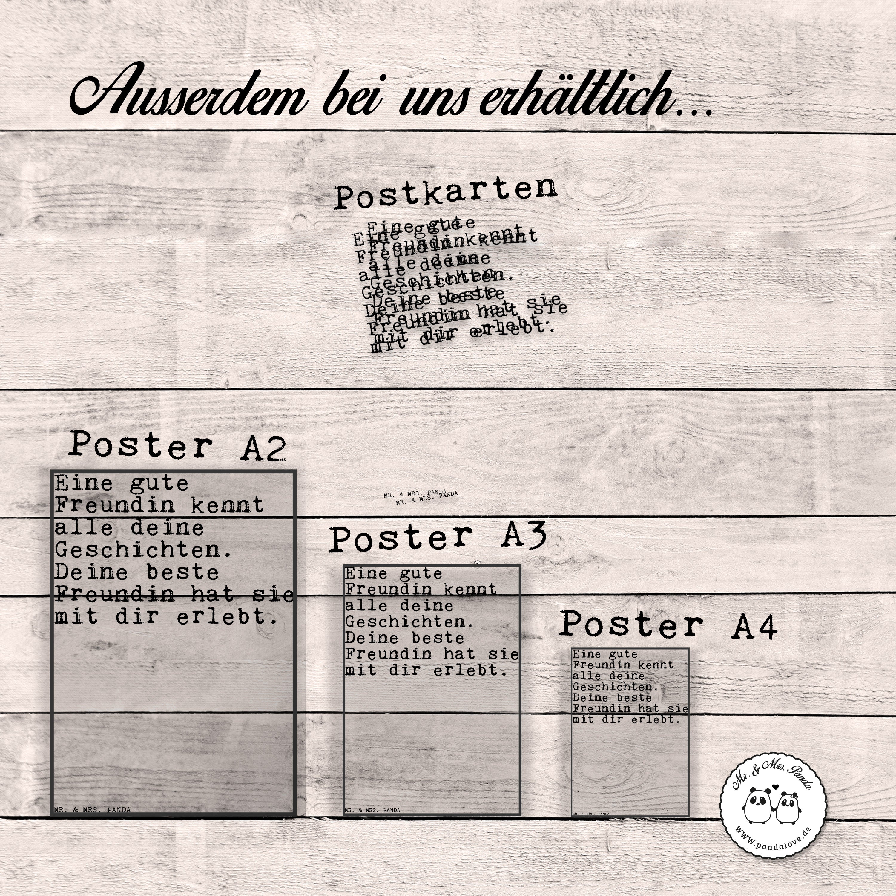 Poster Sprüche und Zitate Eine gute Freundin kennt alle deine Geschichten. Deine beste Freundin hat sie mit dir erlebt. Poster, Wandposter, Bild, Wanddeko, Küchenposter, Kinderposter, Wanddeko Bild, Raumdekoration, Wanddekoration, Handgemaltes Poster, Mr. & Mrs. Panda Poster, Designposter, Kunstdruck, Posterdruck, Spruch, Sprüche, lustig, Weisheiten, Zitate, Spruch Sprüche Weisheiten Zitate Lustig Weisheit Worte