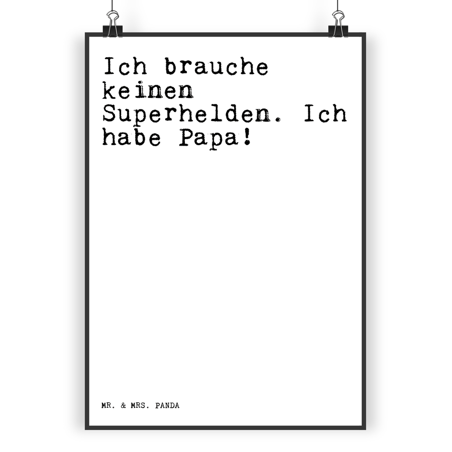 Poster Sprüche und Zitate Ich brauche keinen Superhelden. Ich habe Papa! Poster, Wandposter, Bild, Wanddeko, Küchenposter, Kinderposter, Wanddeko Bild, Raumdekoration, Wanddekoration, Handgemaltes Poster, Mr. & Mrs. Panda Poster, Designposter, Kunstdruck, Posterdruck, Spruch, Sprüche, lustig, Weisheiten, Zitate, Spruch Sprüche Weisheiten Zitate Lustig Weisheit Worte