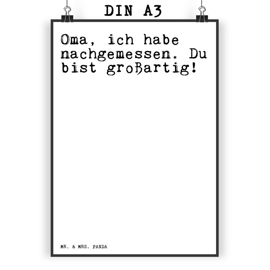 Poster Sprüche und Zitate Oma, ich habe nachgemessen. Du bist großartig! Poster, Wandposter, Bild, Wanddeko, Küchenposter, Kinderposter, Wanddeko Bild, Raumdekoration, Wanddekoration, Handgemaltes Poster, Mr. & Mrs. Panda Poster, Designposter, Kunstdruck, Posterdruck, Spruch, Sprüche, lustig, Weisheiten, Zitate, Spruch Sprüche Weisheiten Zitate Lustig Weisheit Worte