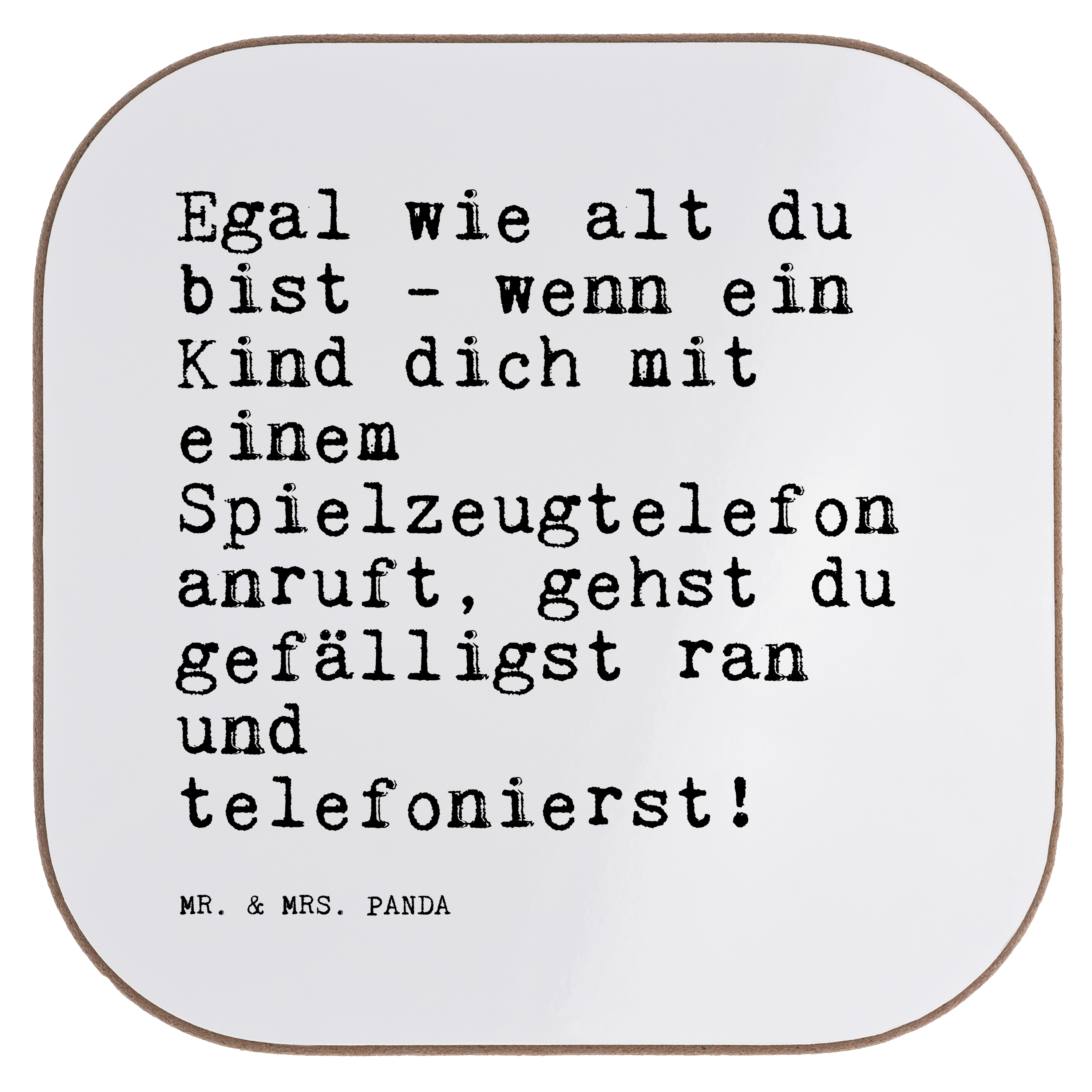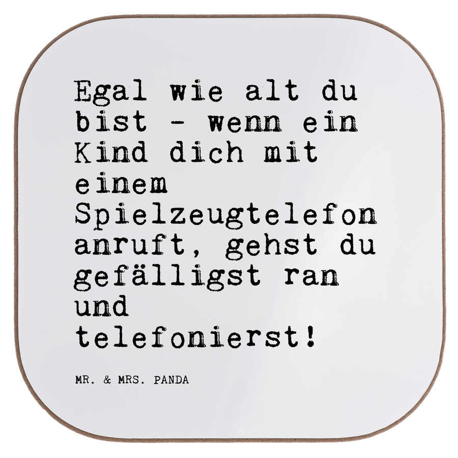 Quadratische Untersetzer Sprüche und Zitate Egal wie alt du bist - wenn ein Kind dich mit einem Spielzeugtelefon anruft, gehst du gefälligst ran und telefonierst!