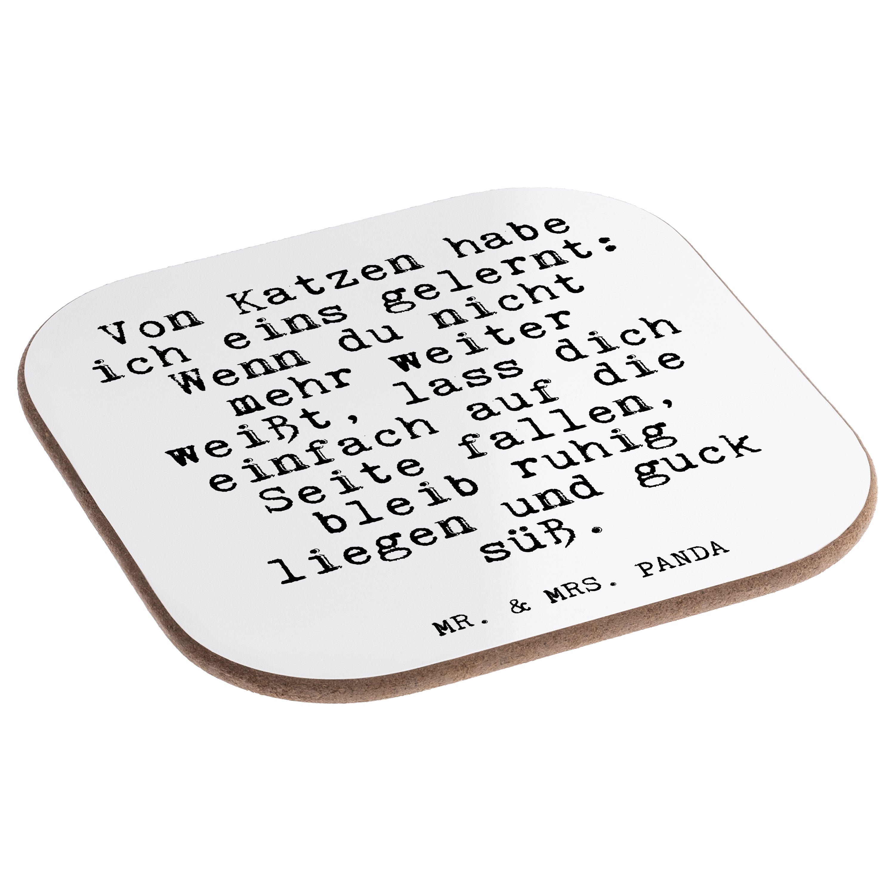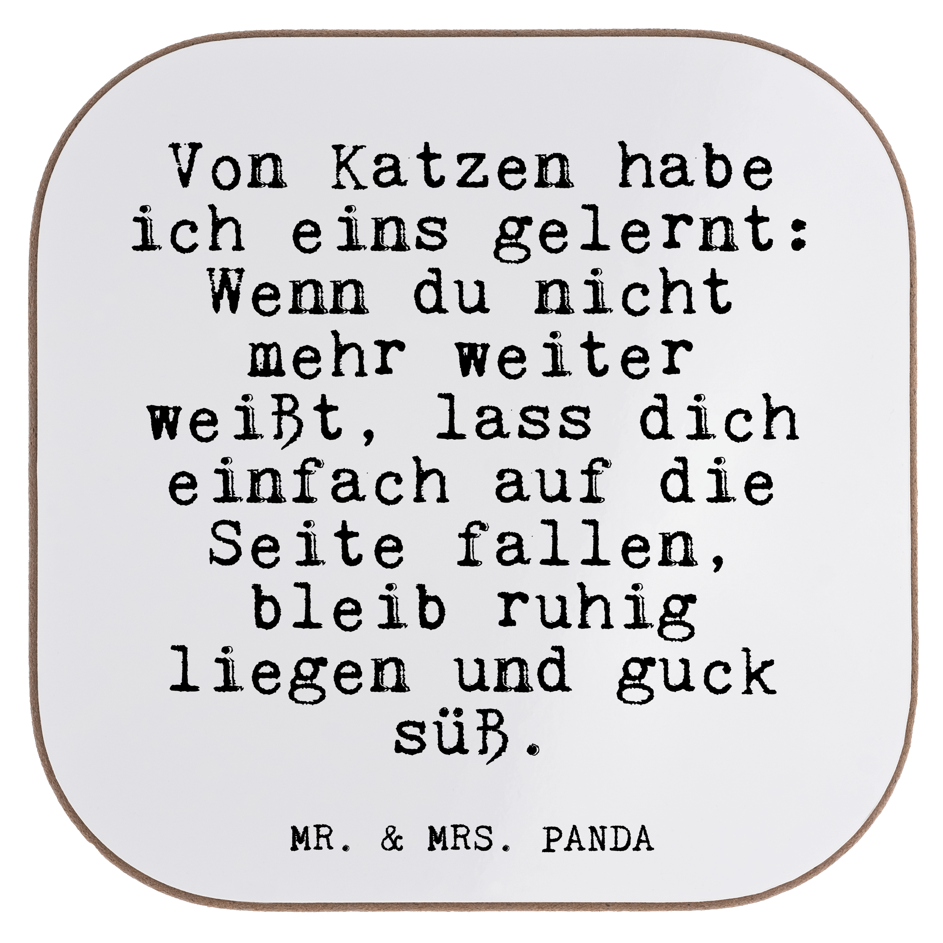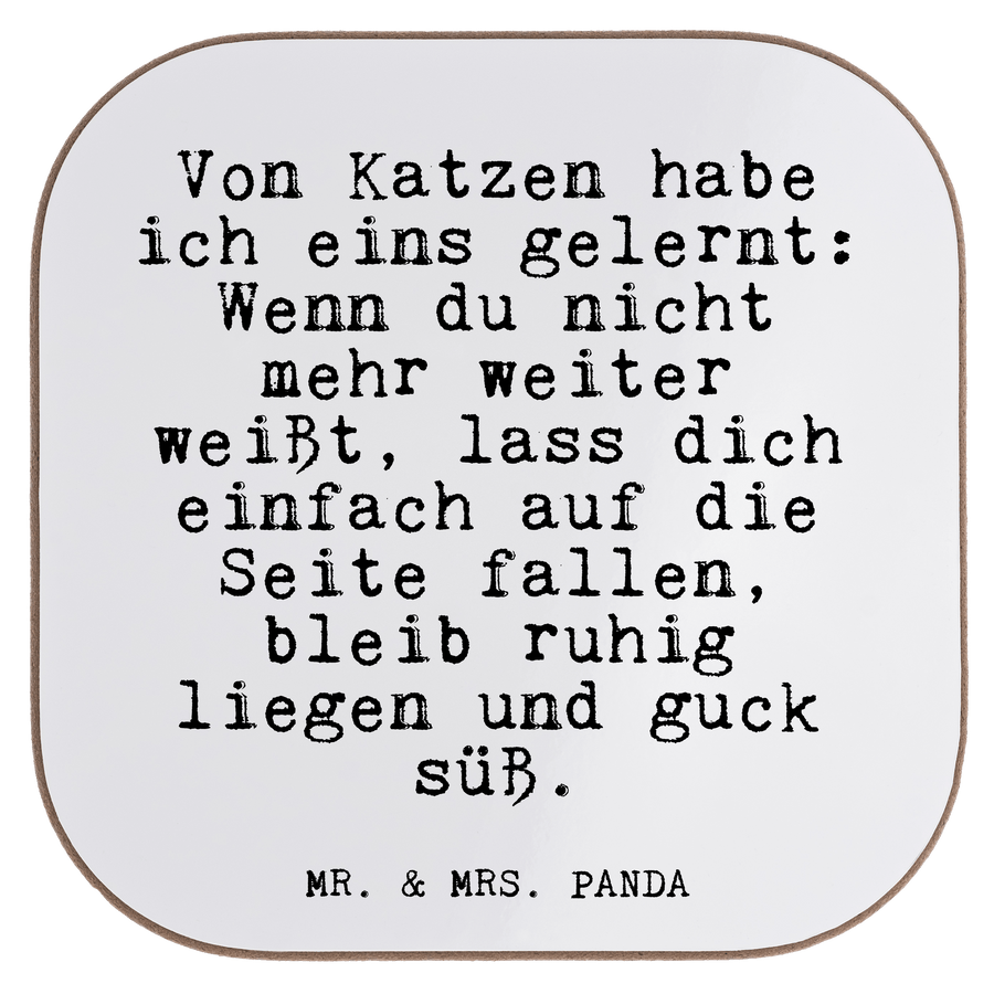 Quadratische Untersetzer Fun Talk Von Katzen habe ich eins gelernt: Wenn du nicht mehr weiter weißt, lass dich einfach auf die Seite fallen, bleib ruhig liegen und guck süß.