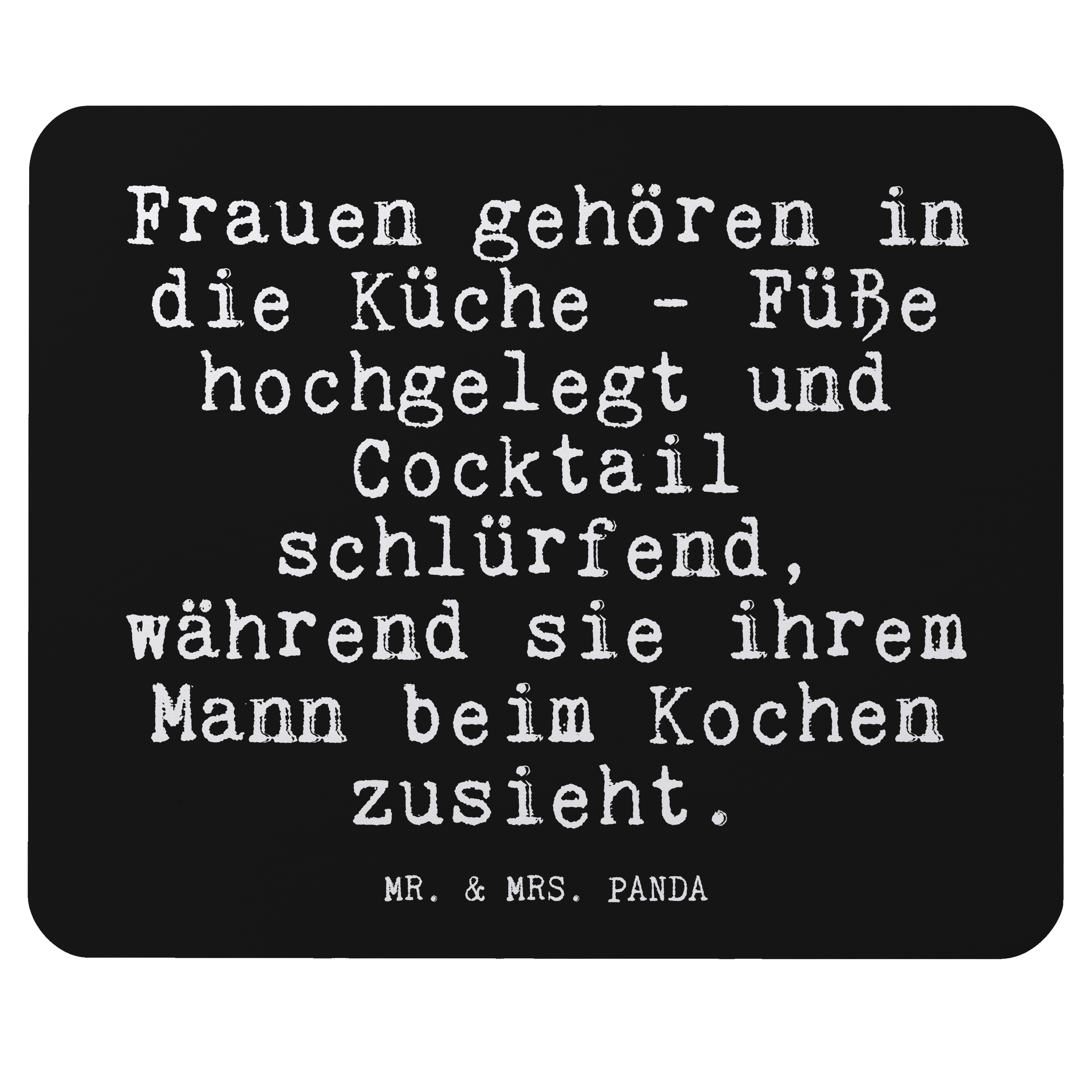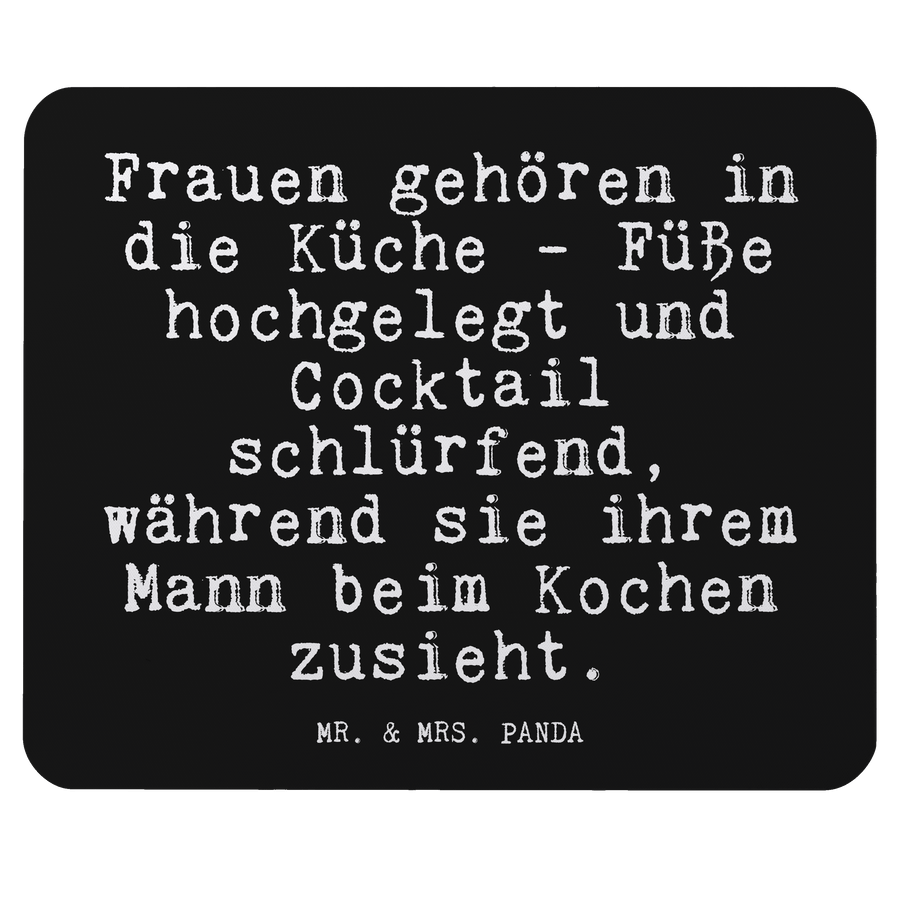 Mauspad Fun Talk Frauen gehören in die Küche - Füße hochgelegt und Cocktail schlürfend, während sie ihrem Mann beim Kochen zusieht.