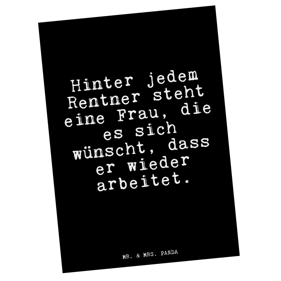 Postkarte Fun Talk Hinter jedem Rentner steht eine Frau, die es sich wünscht, dass er wieder arbeitet.