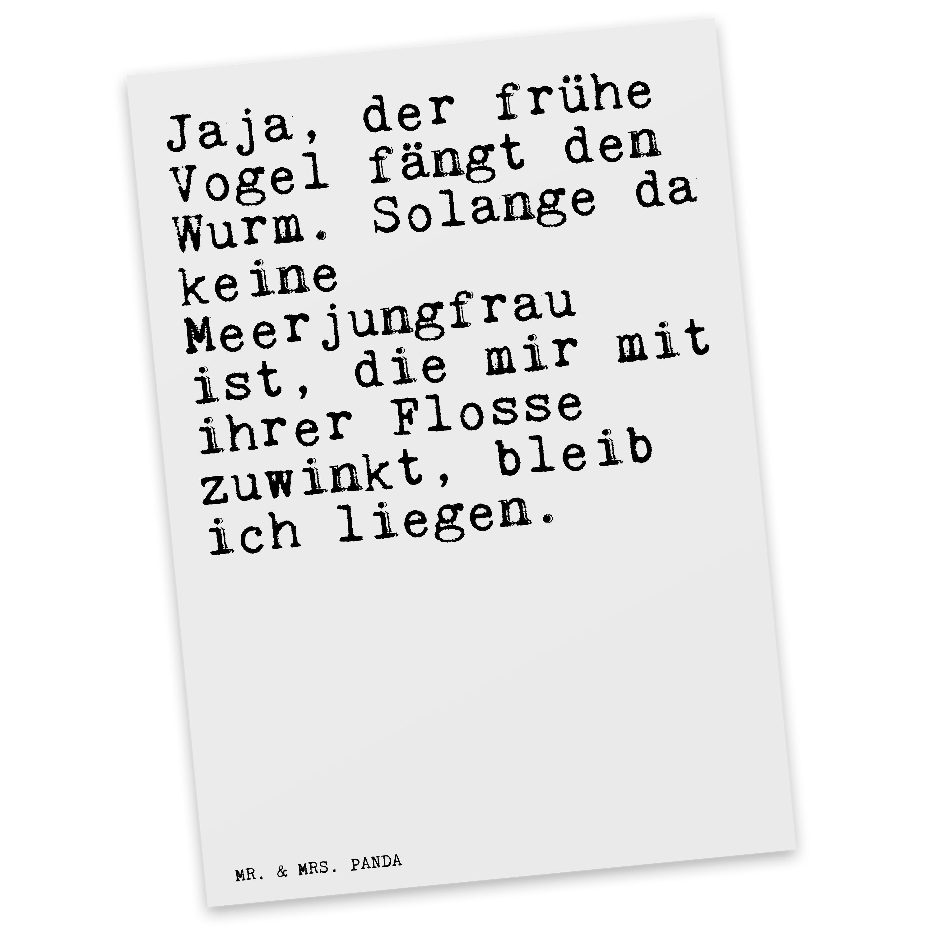 Postkarte "Jaja, der frühe Vogel fängt den Wurm. Solange da keine Meerjungfrau ist, die mir mit ihrer Flosse zuwinkt, bleib ich liegen. "