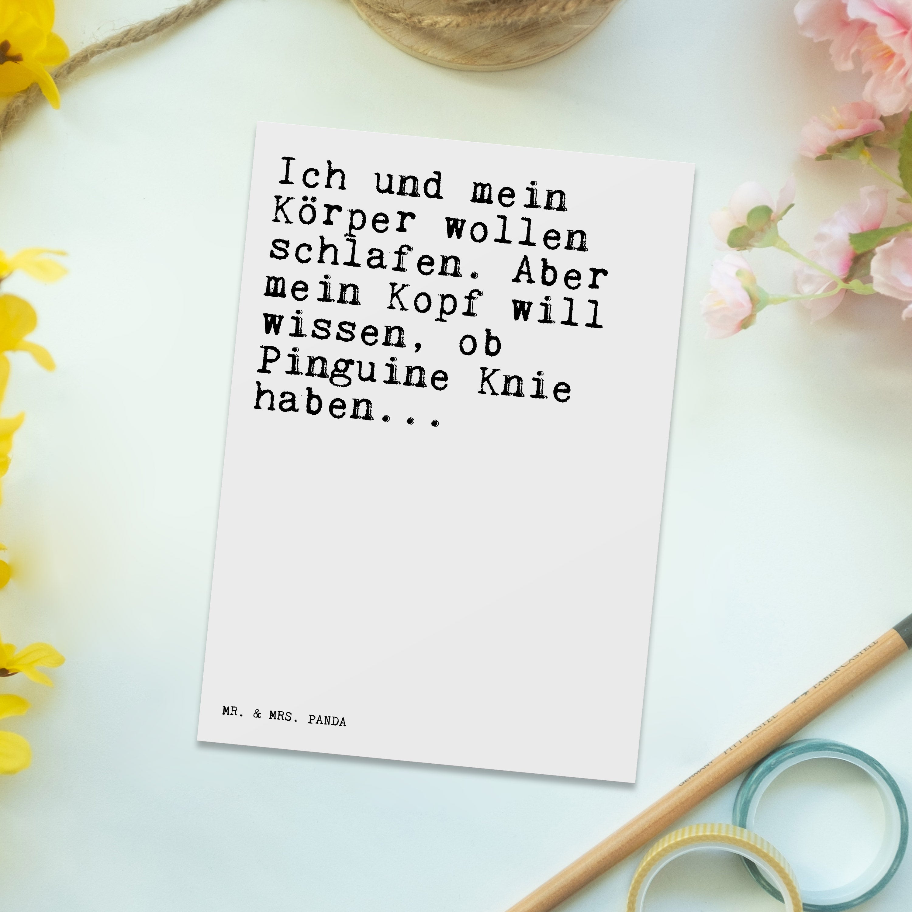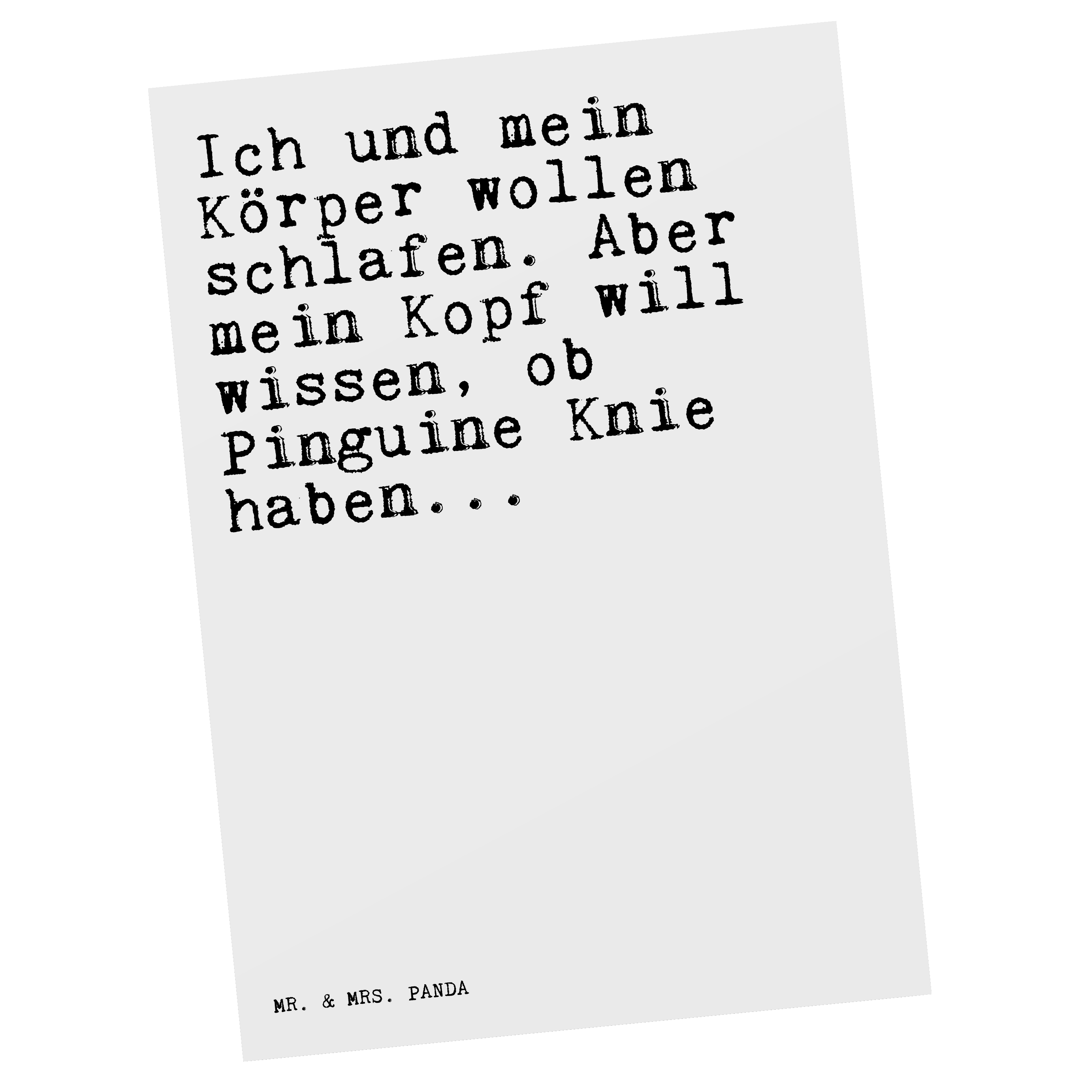 Postkarte Sprüche und Zitate Ich und mein Körper wollen schlafen. Aber mein Kopf will wissen, ob Pinguine Knie haben...