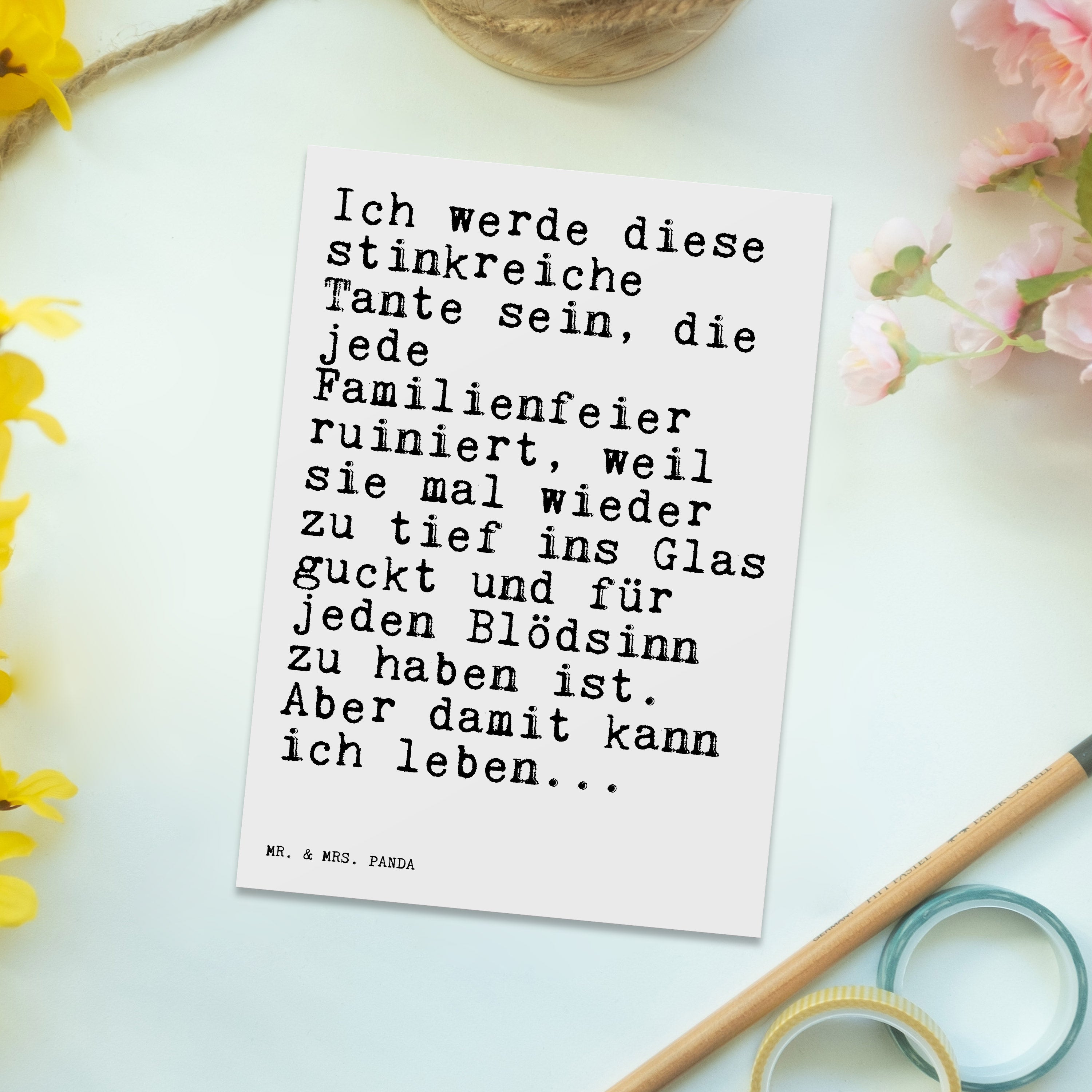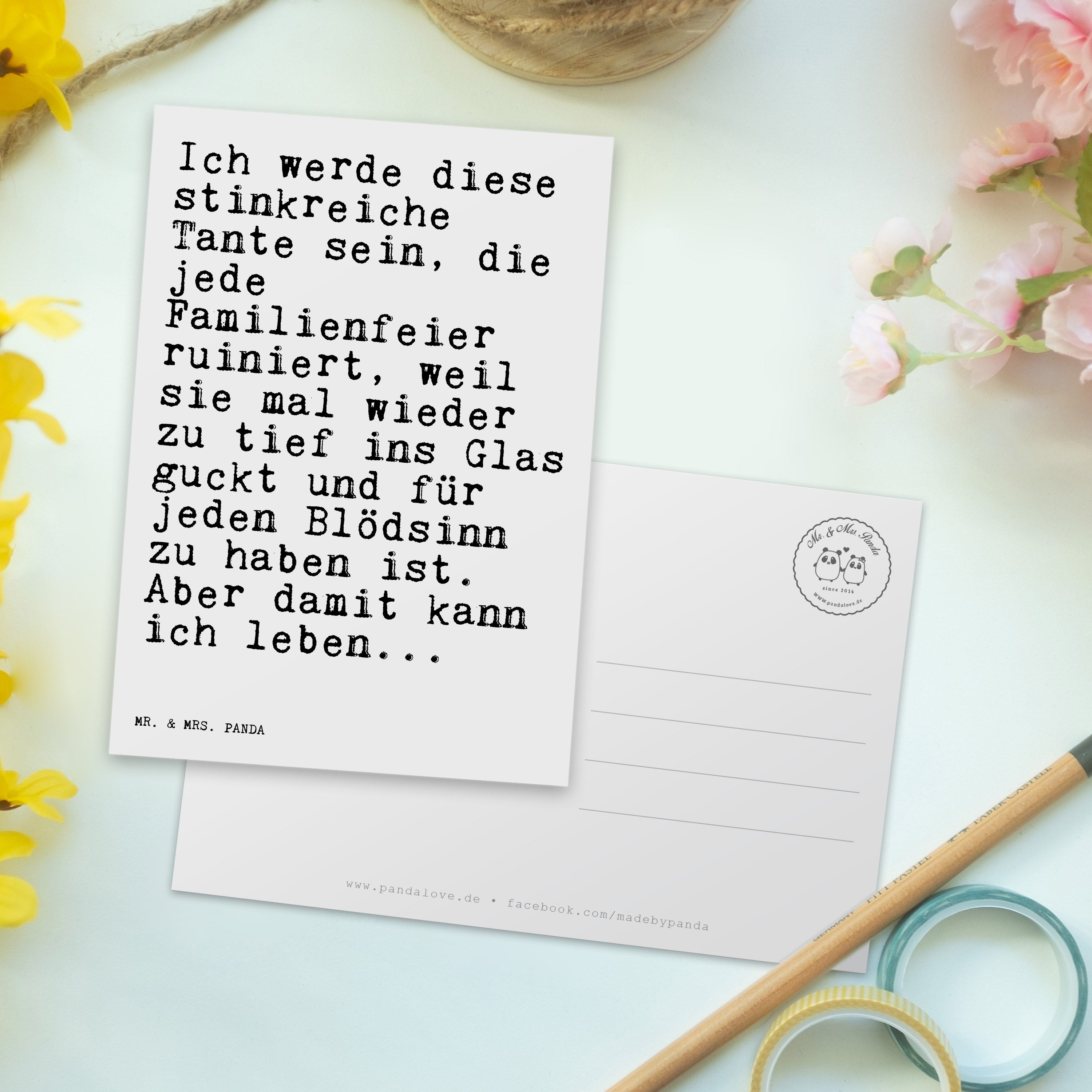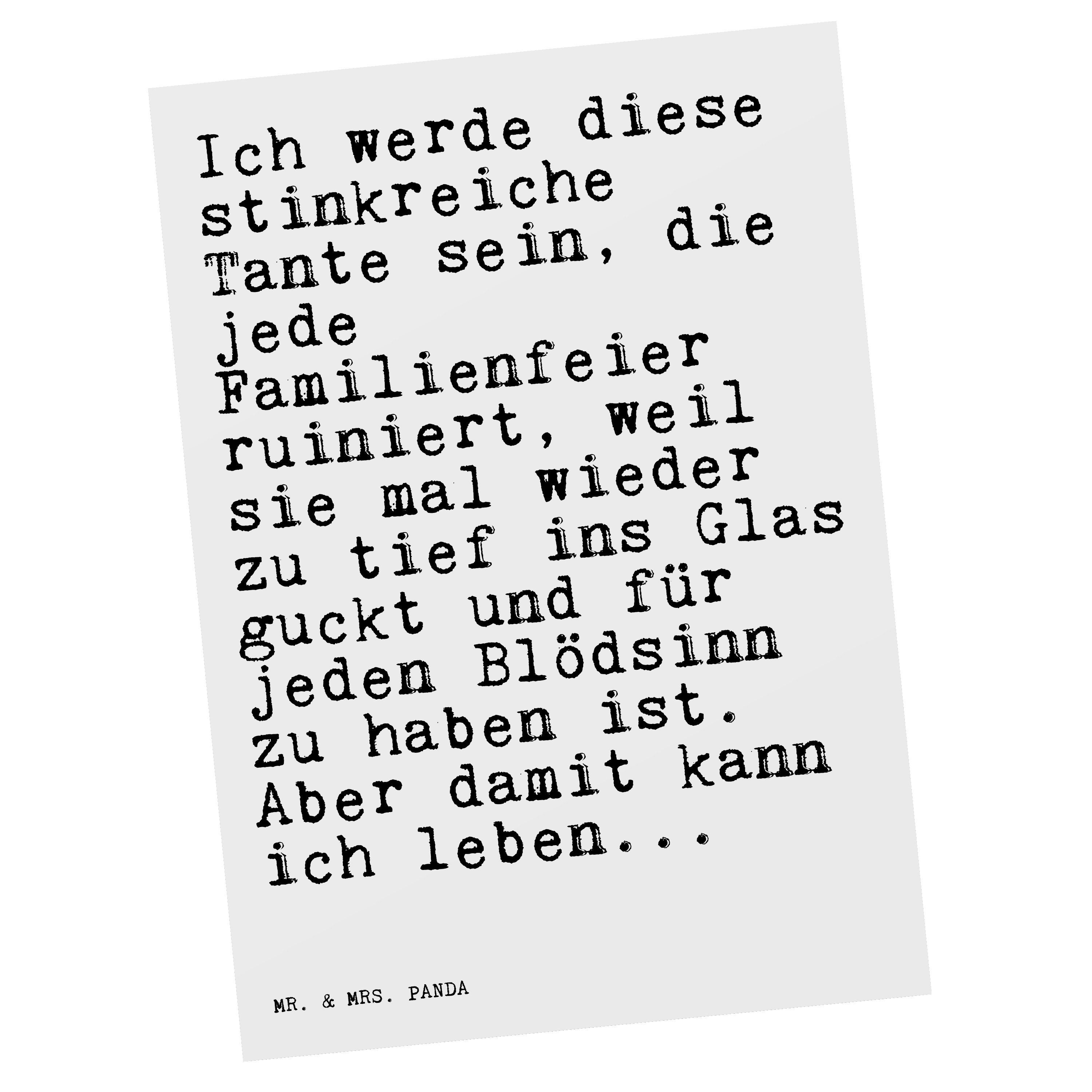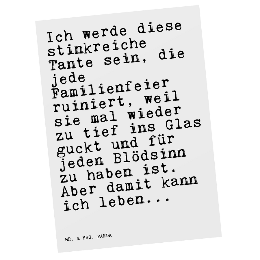Postkarte Sprüche und Zitate Ich werde diese stinkreiche Tante sein, die jede Familienfeier ruiniert, weil sie mal wieder zu tief ins Glas guckt und für jeden Blödsinn zu haben ist. Aber damit kann ich leben...
