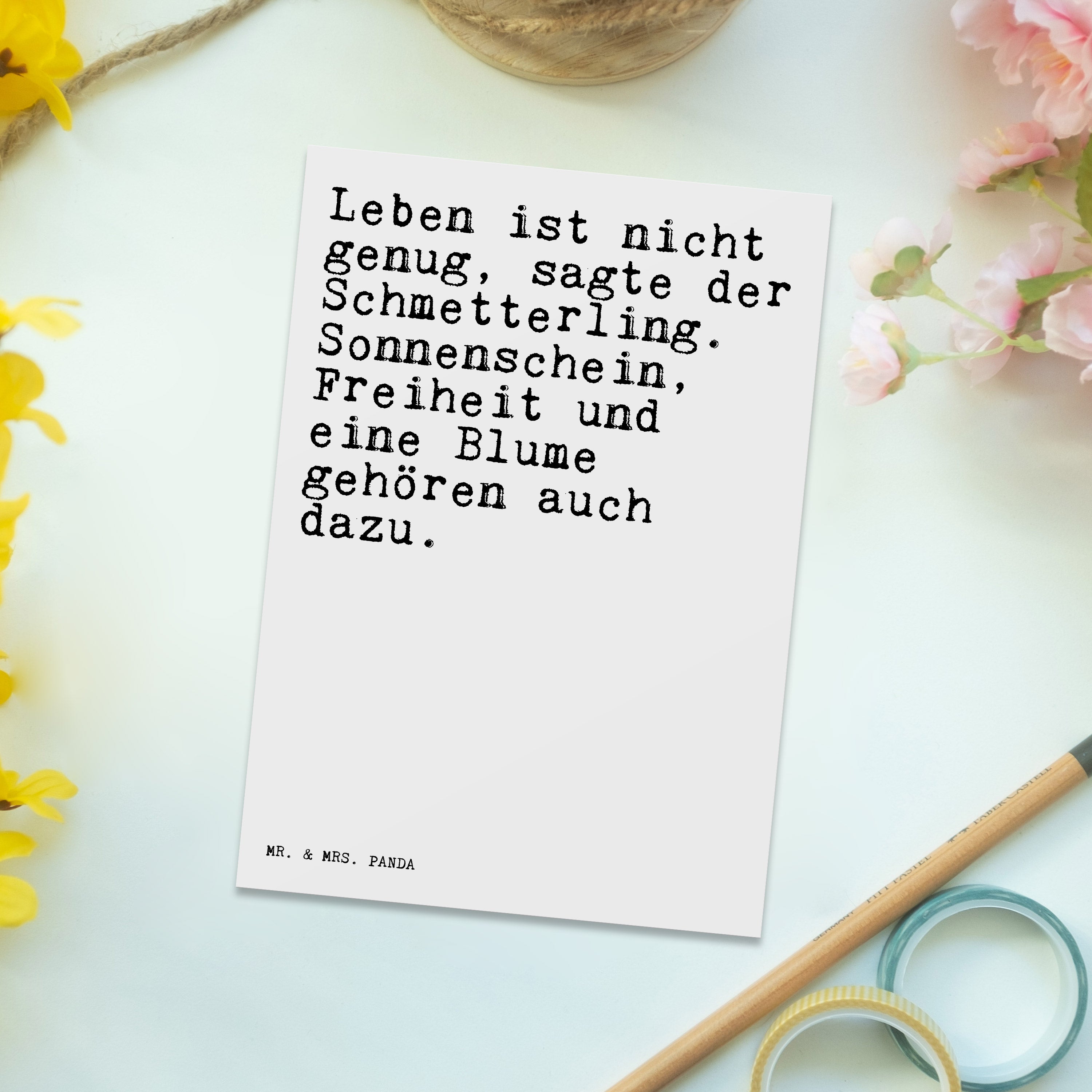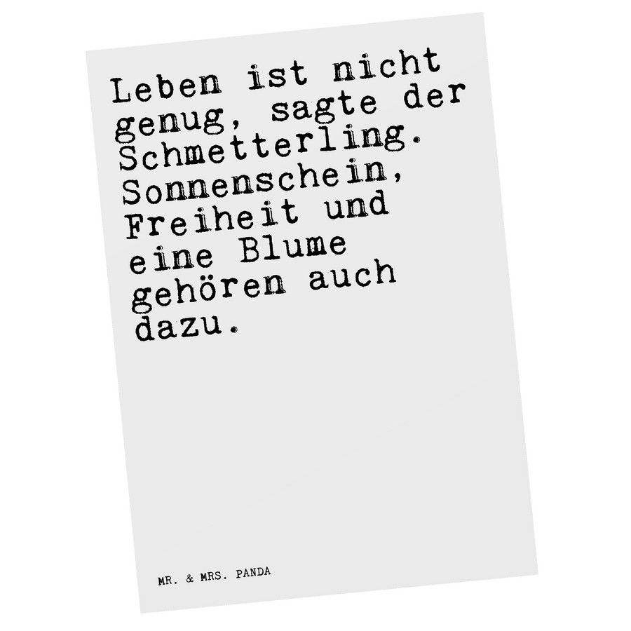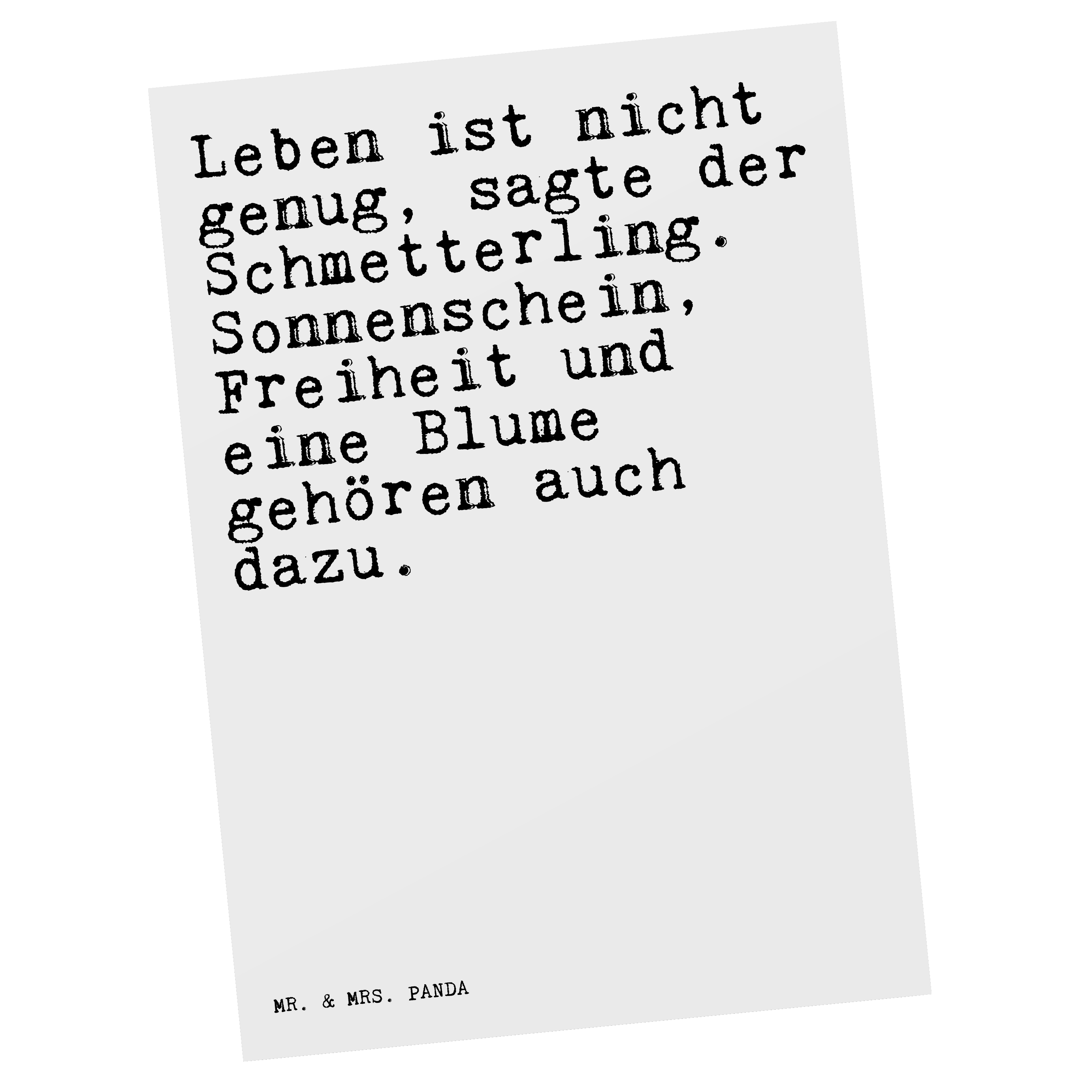 Postkarte Sprüche und Zitate Leben ist nicht genug, sagte der Schmetterling. Sonnenschein, Freiheit und eine Blume gehören auch dazu.