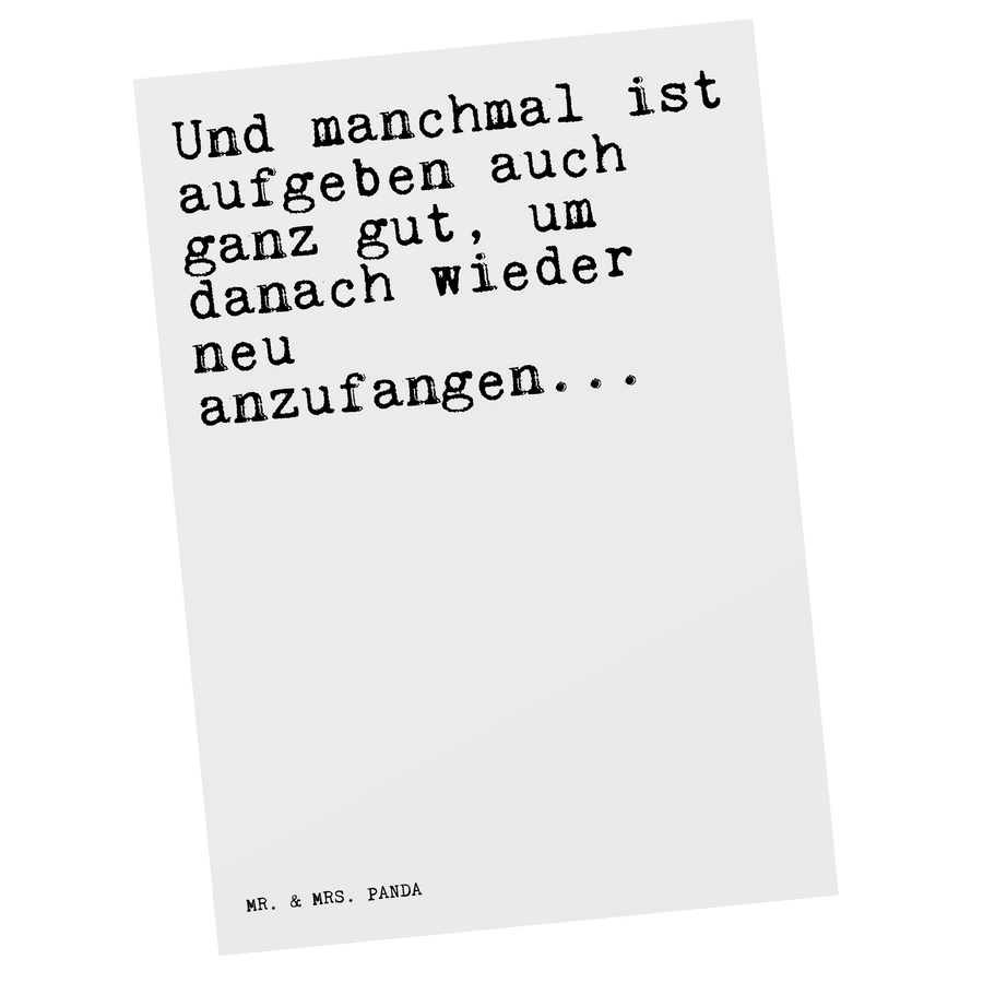 Postkarte Sprüche und Zitate Und manchmal ist aufgeben auch ganz gut, um danach wieder neu anzufangen...