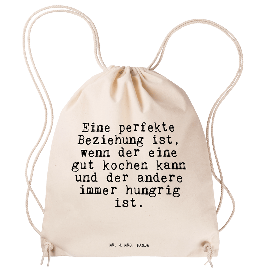 Sportbeutel Sprüche und Zitate Eine perfekte Beziehung ist, wenn der eine gut kochen kann und der andere immer hungrig ist. - Transparent