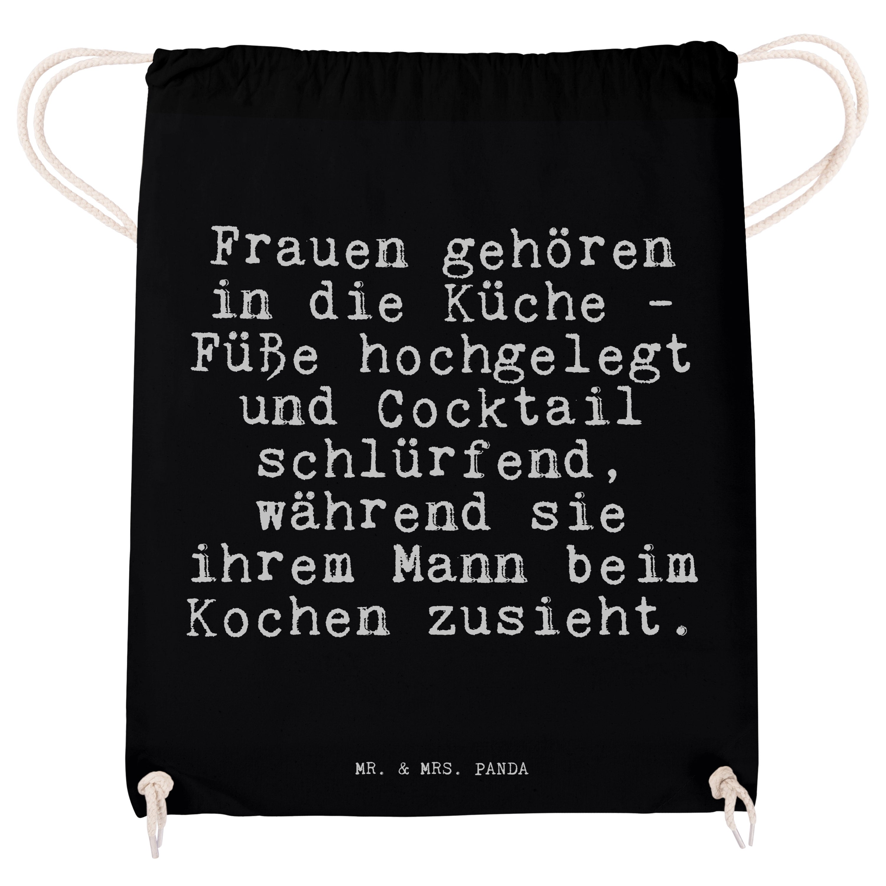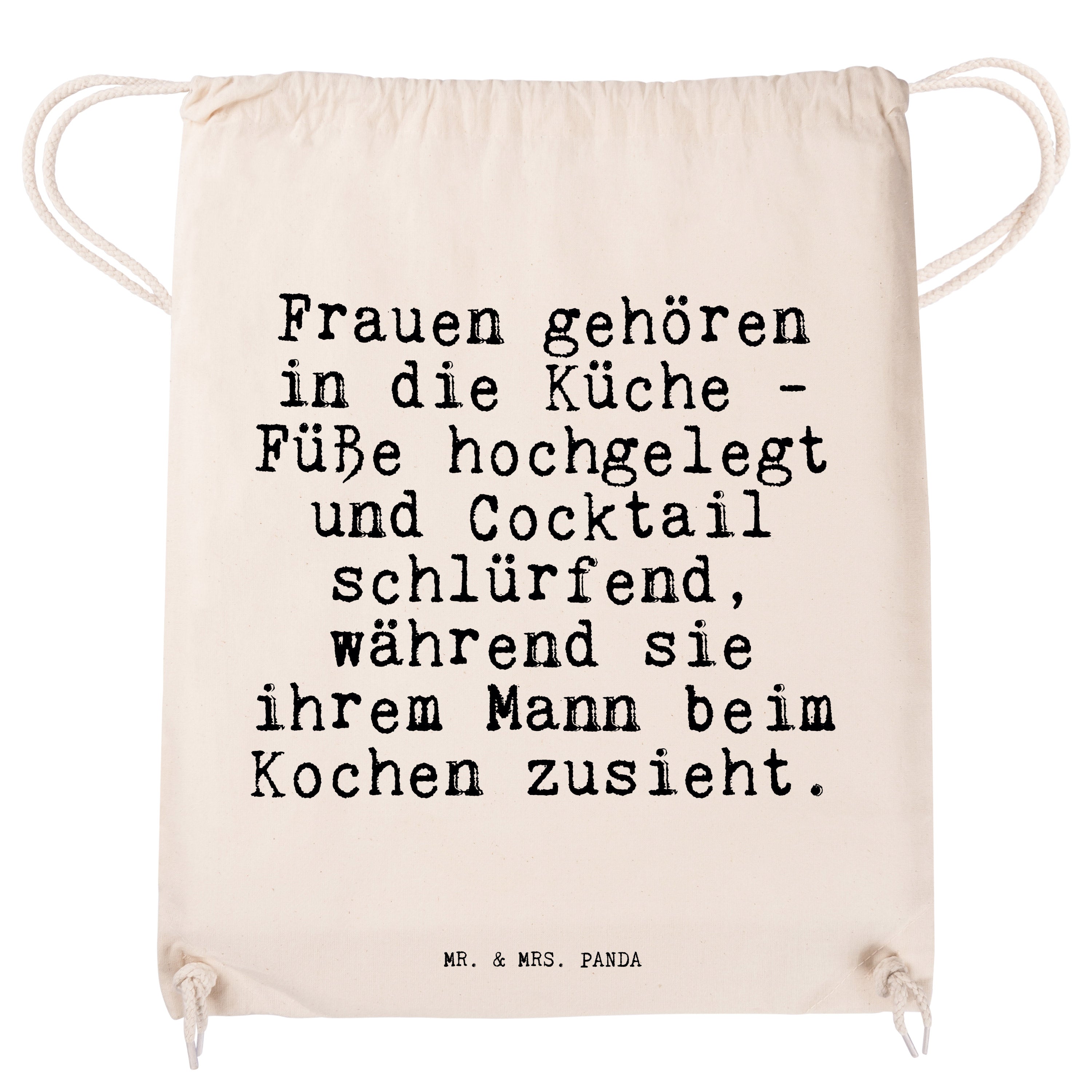Sportbeutel Sprüche und Zitate Frauen gehören in die Küche - Füße hochgelegt und Cocktail schlürfend, während sie ihrem Mann beim Kochen zusieht. - Transparent