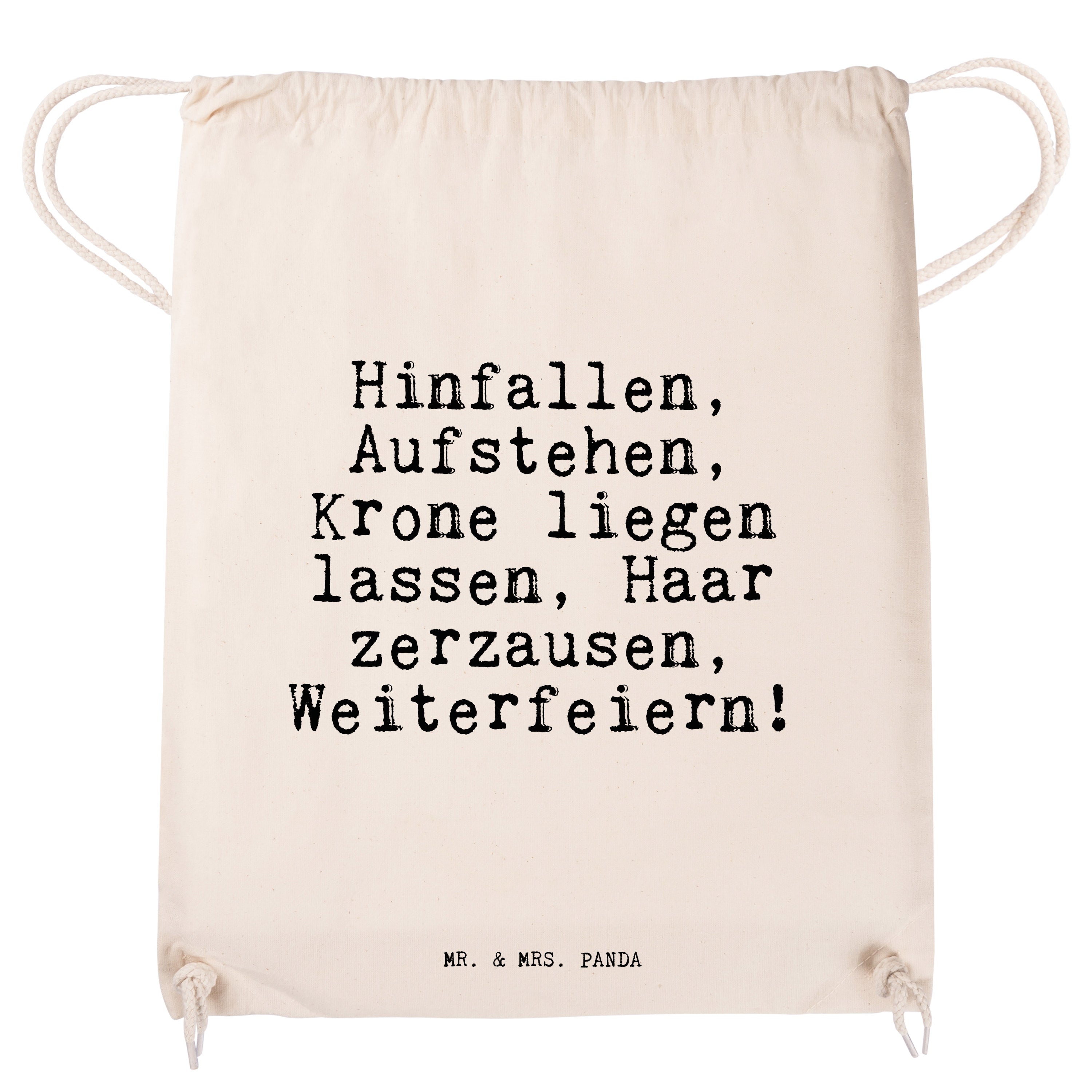 Sportbeutel Sprüche und Zitate Hinfallen, Aufstehen, Krone liegen lassen, Haar zerzausen, Weiterfeiern! - Transparent