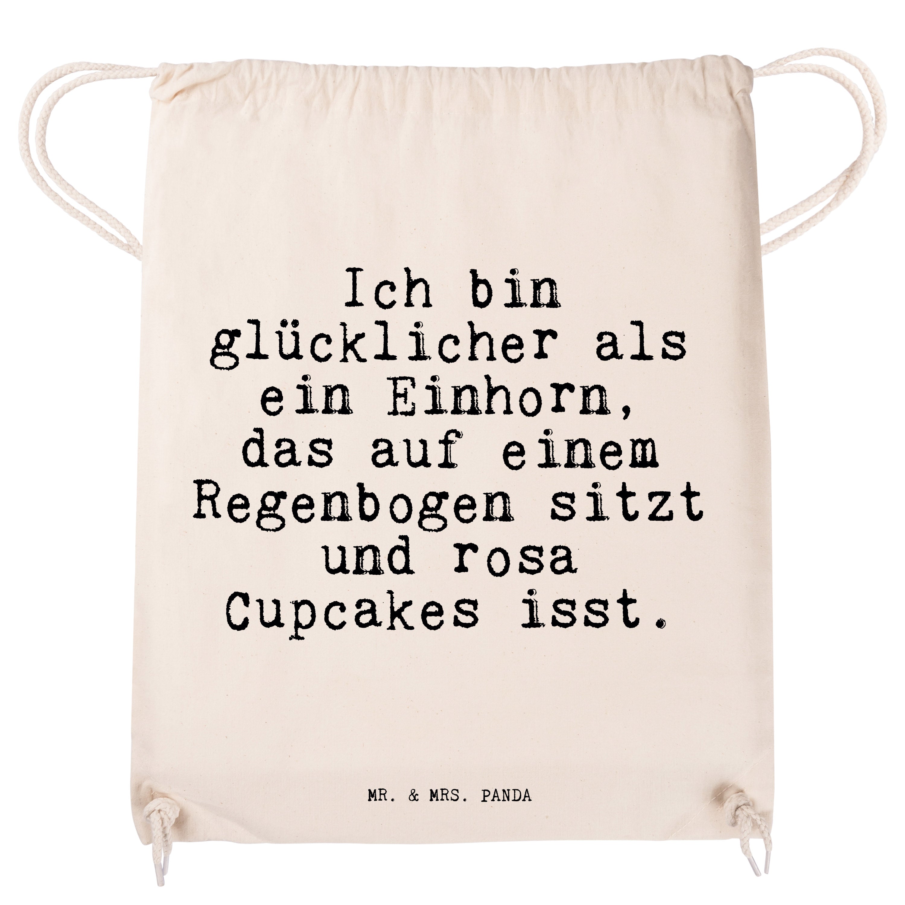 Sportbeutel Sprüche und Zitate Ich bin glücklicher als ein Einhorn, das auf einem Regenbogen sitzt und rosa Cupcakes isst. - Transparent