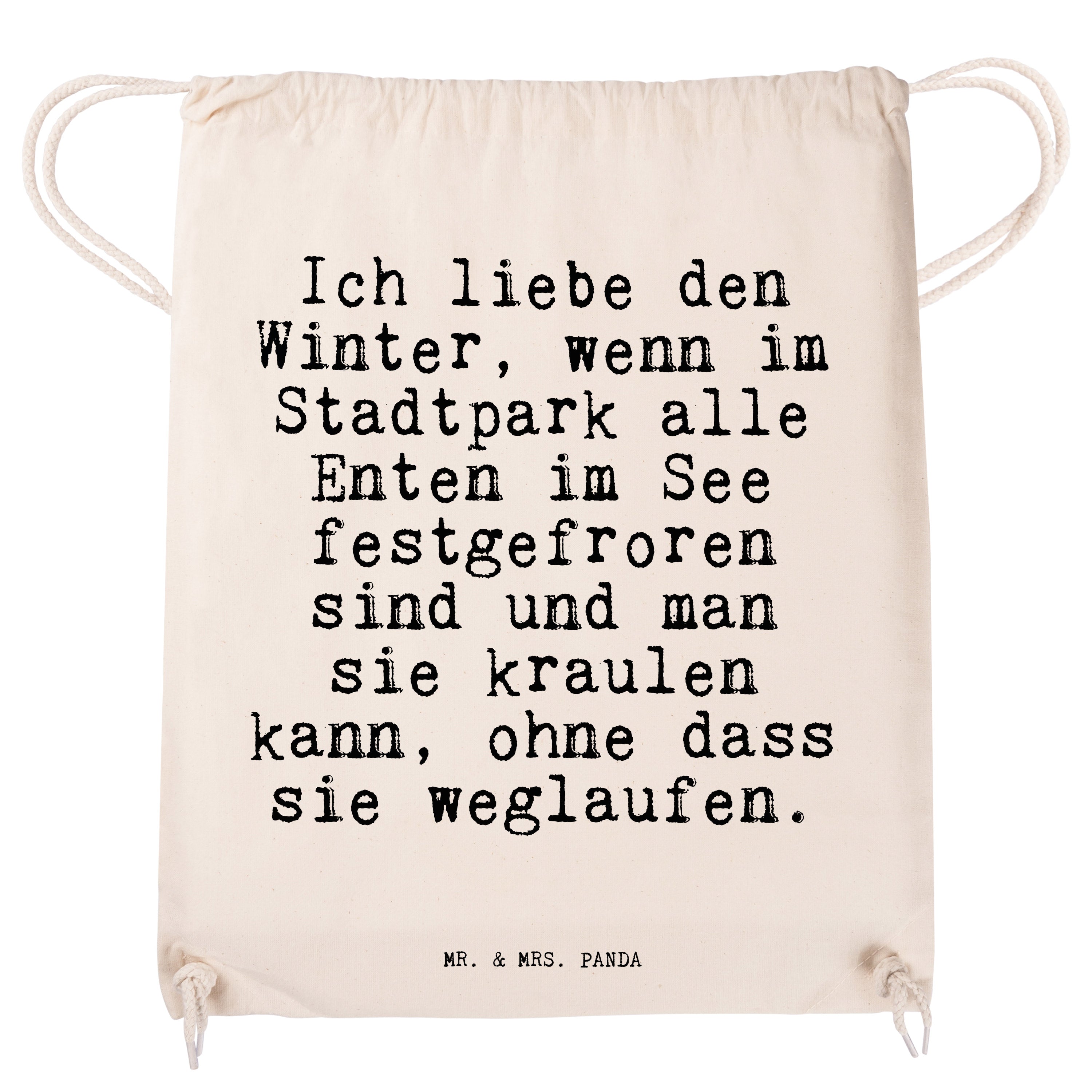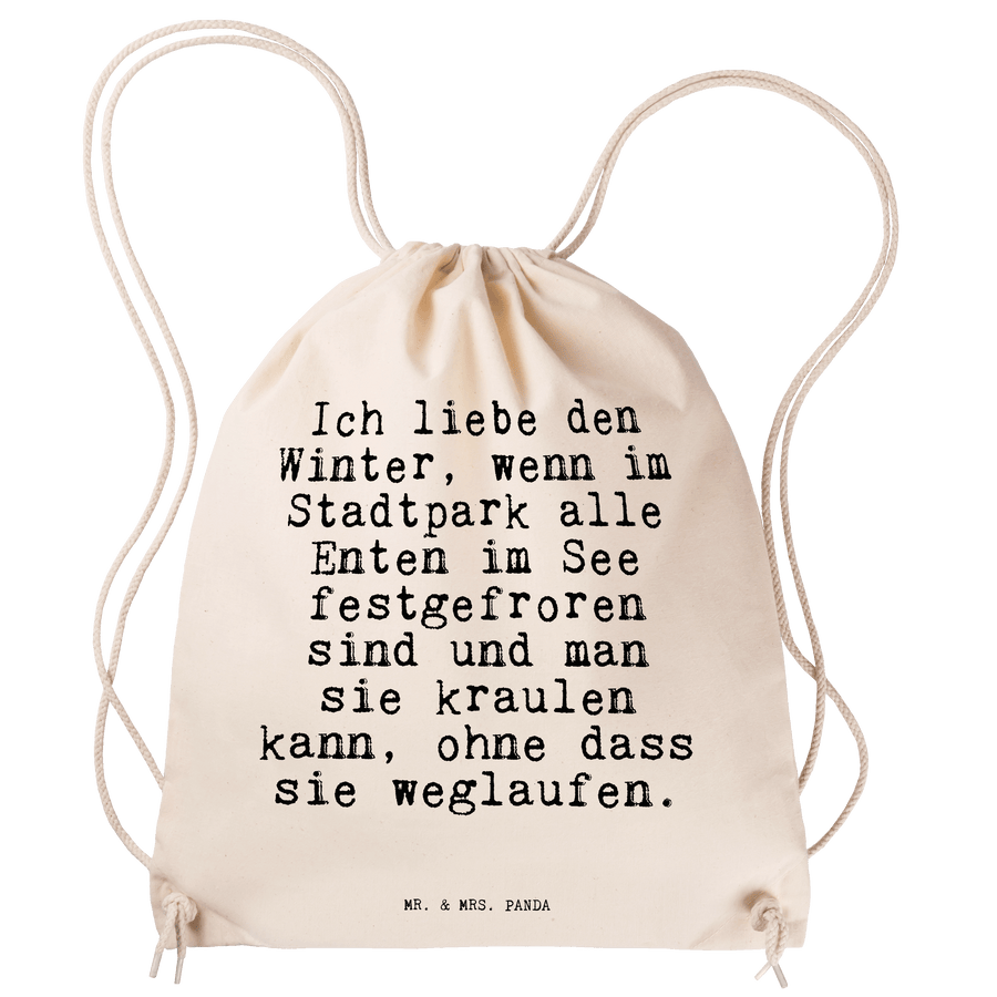 Sportbeutel Sprüche und Zitate Ich liebe den Winter, wenn im Stadtpark alle Enten im See festgefroren sind und man sie kraulen kann, ohne dass sie weglaufen. - Transparent