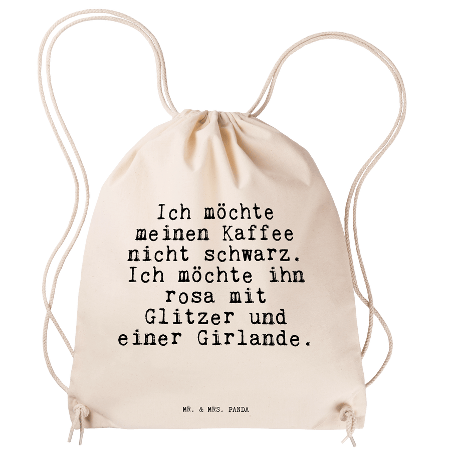Sportbeutel Sprüche und Zitate Ich möchte meinen Kaffee nicht schwarz. Ich möchte ihn rosa mit Glitzer und einer Girlande. - Transparent