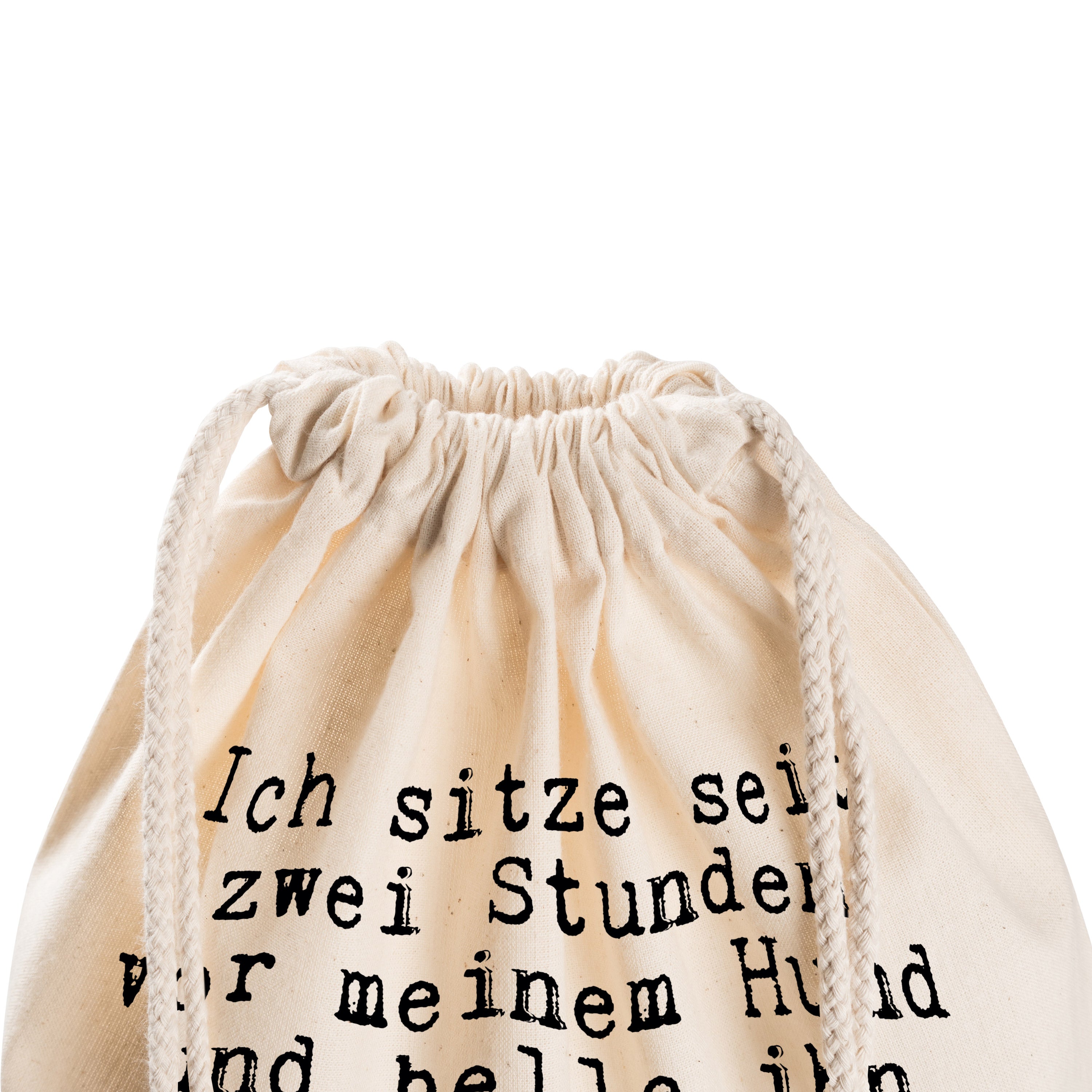 Sportbeutel Sprüche und Zitate Ich sitze seit zwei Stunden vor meinem Hund und belle ihn an, um ihm zu zeigen, wie dämlich sein Verhalten letzte Nacht war. - Transparent