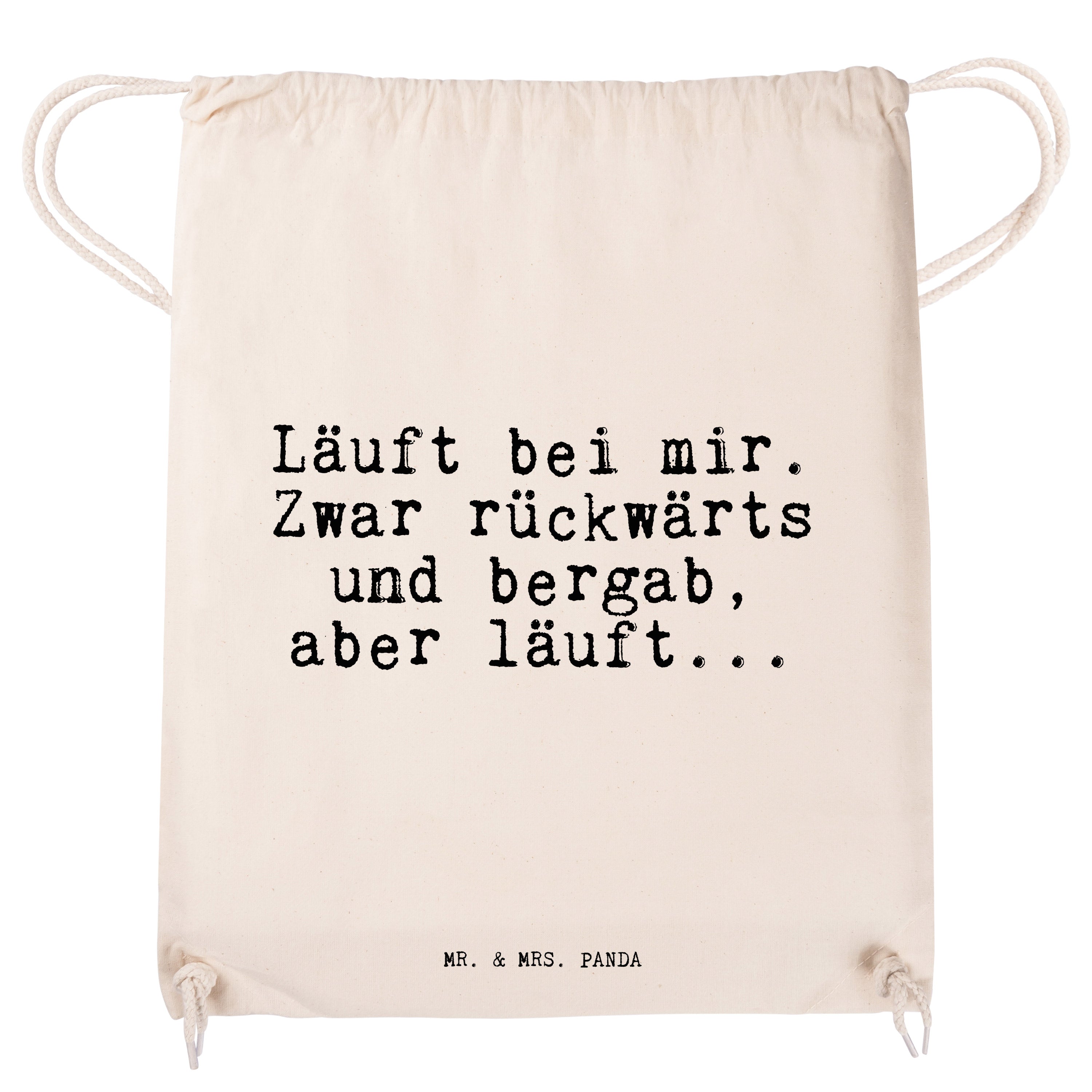 Sportbeutel Sprüche und Zitate Läuft bei mir. Zwar rückwärts und bergab, aber läuft... - Transparent