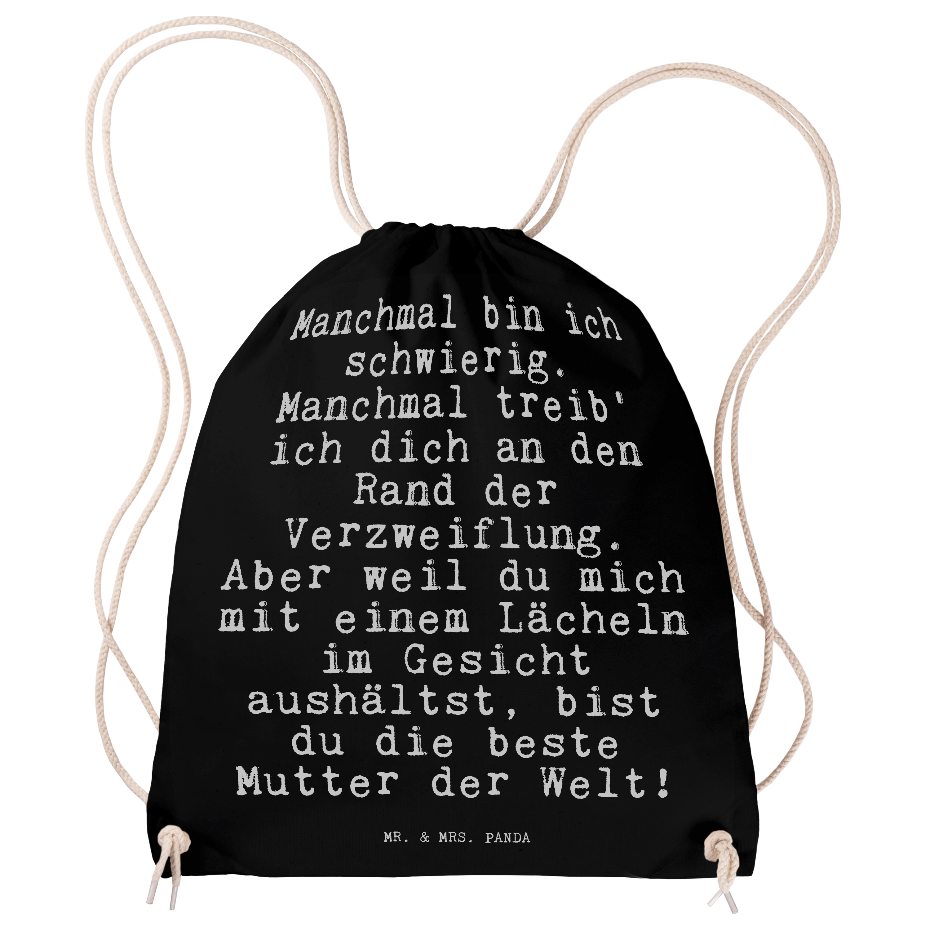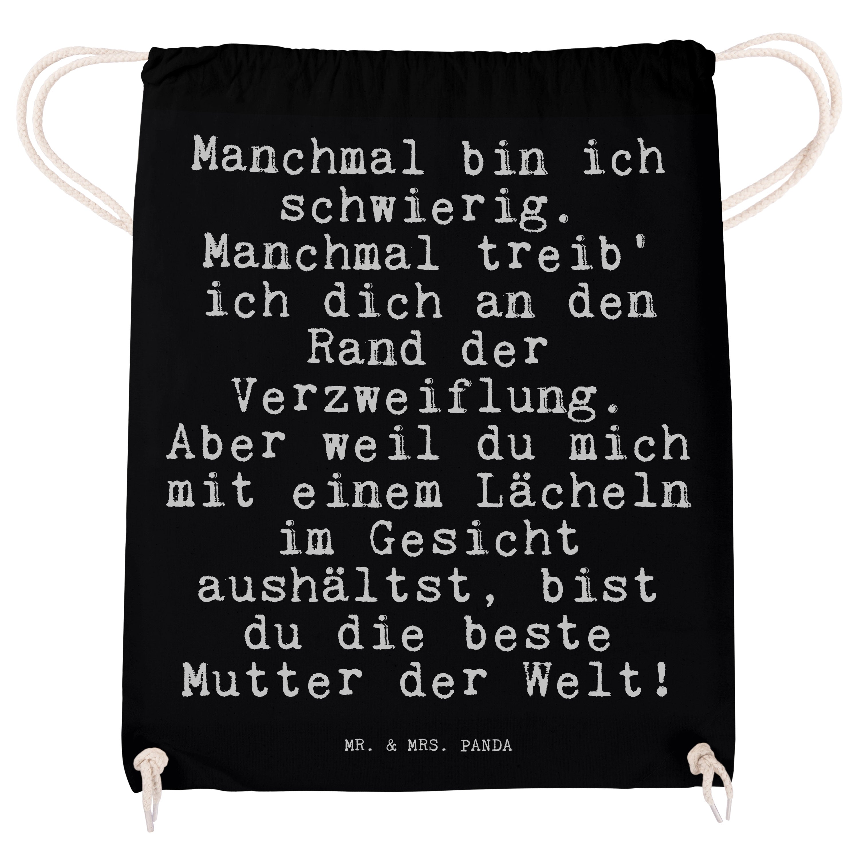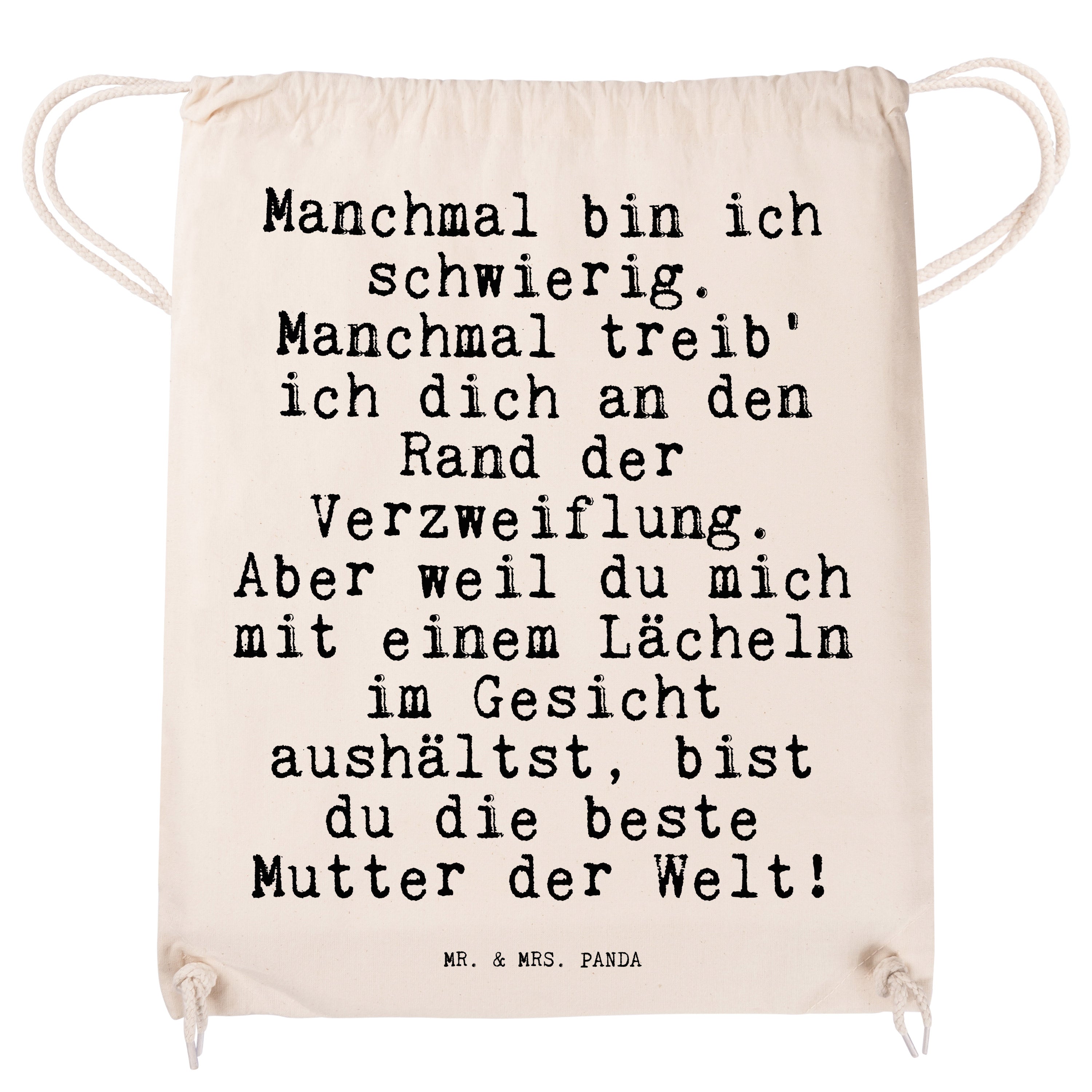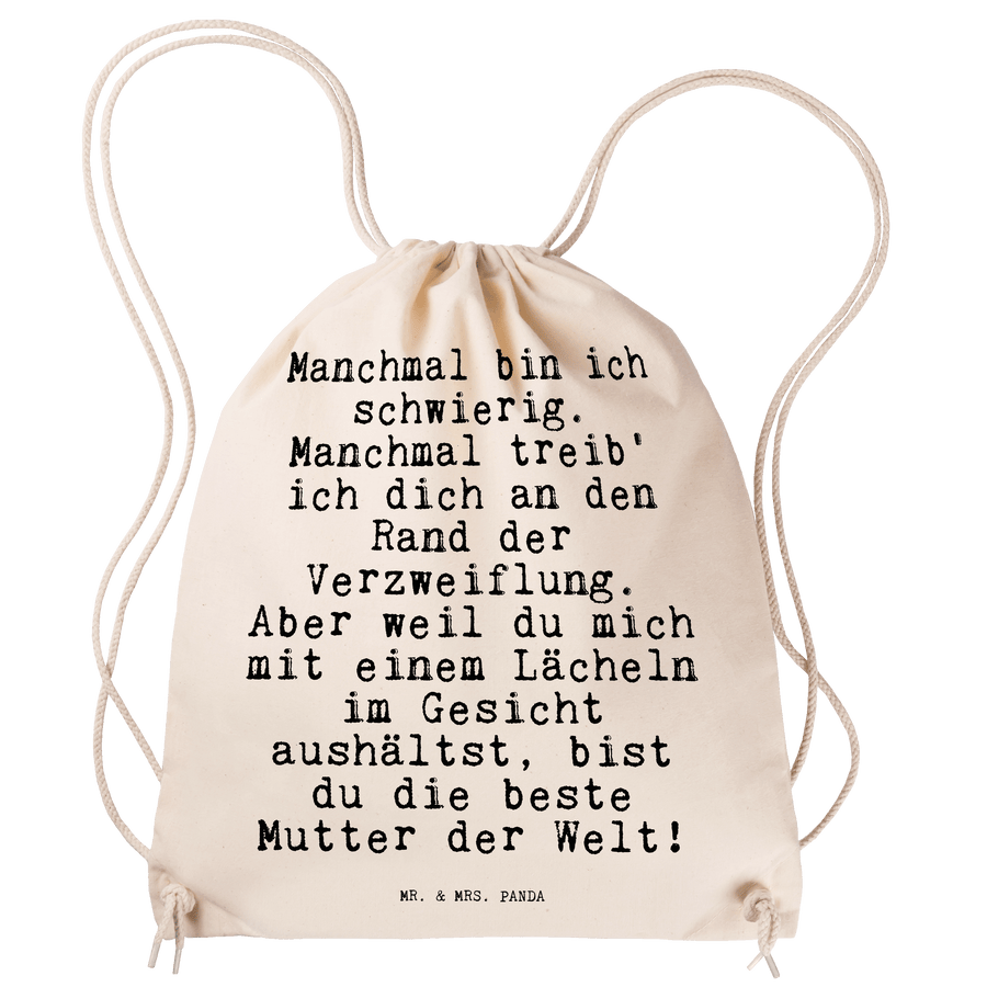 Sportbeutel Sprüche und Zitate Manchmal bin ich schwierig. Manchmal treib' ich dich an den Rand der Verzweiflung. Aber weil du mich mit einem Lächeln im Gesicht aushältst, bist du die beste Mutter der Welt! - Transparent