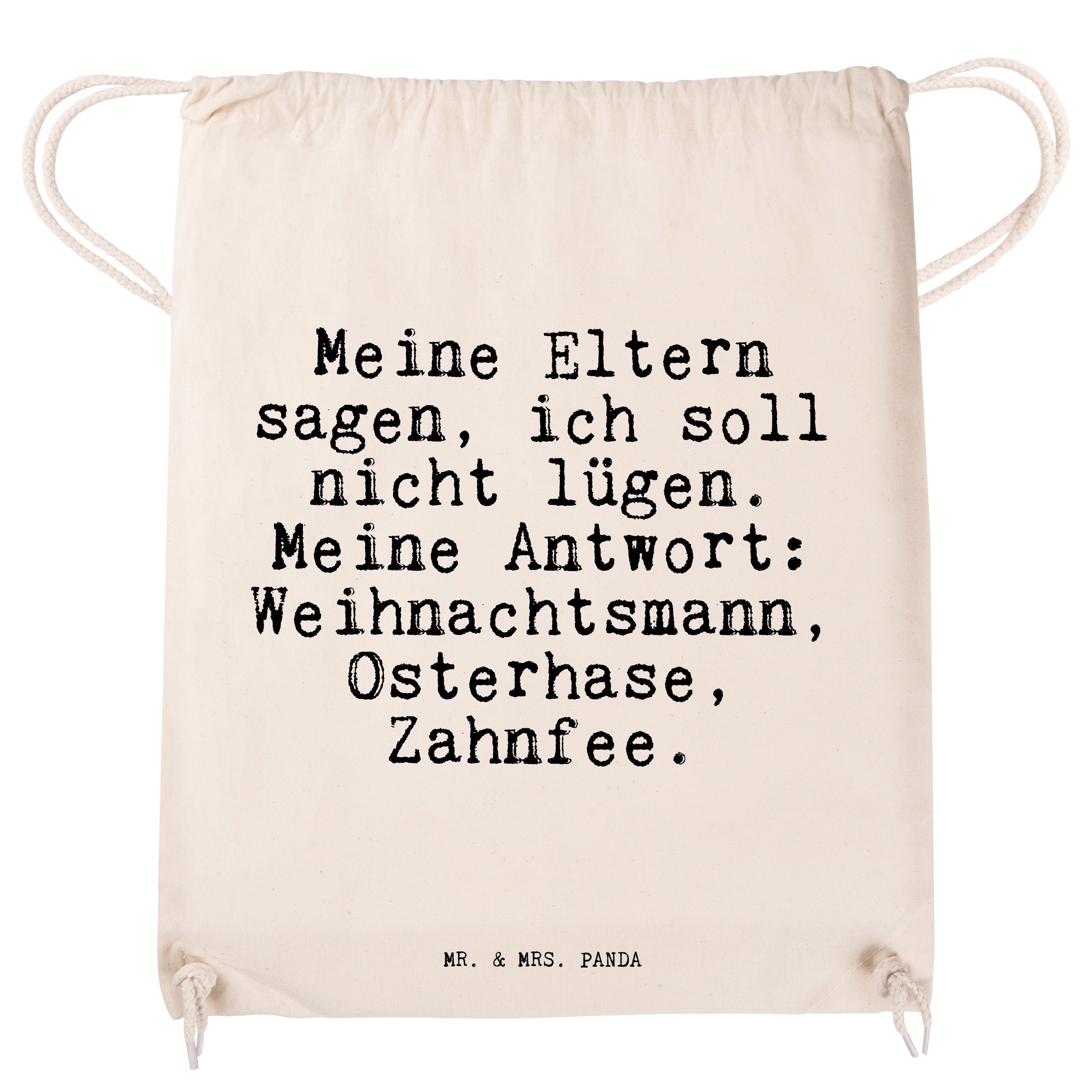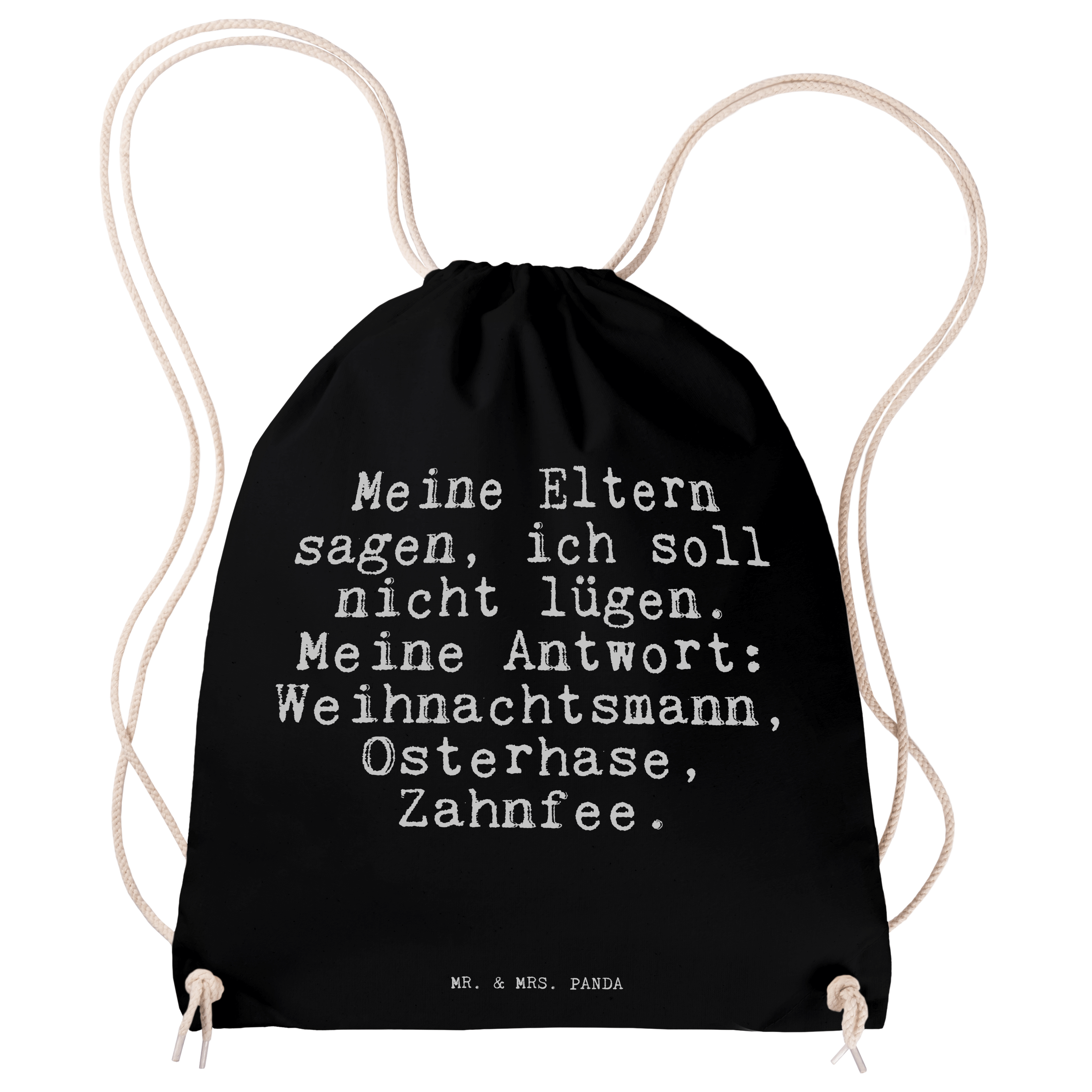 Sportbeutel Sprüche und Zitate Meine Eltern sagen, ich soll nicht lügen. Meine Antwort: Weihnachtsmann, Osterhase, Zahnfee. - Schwarz