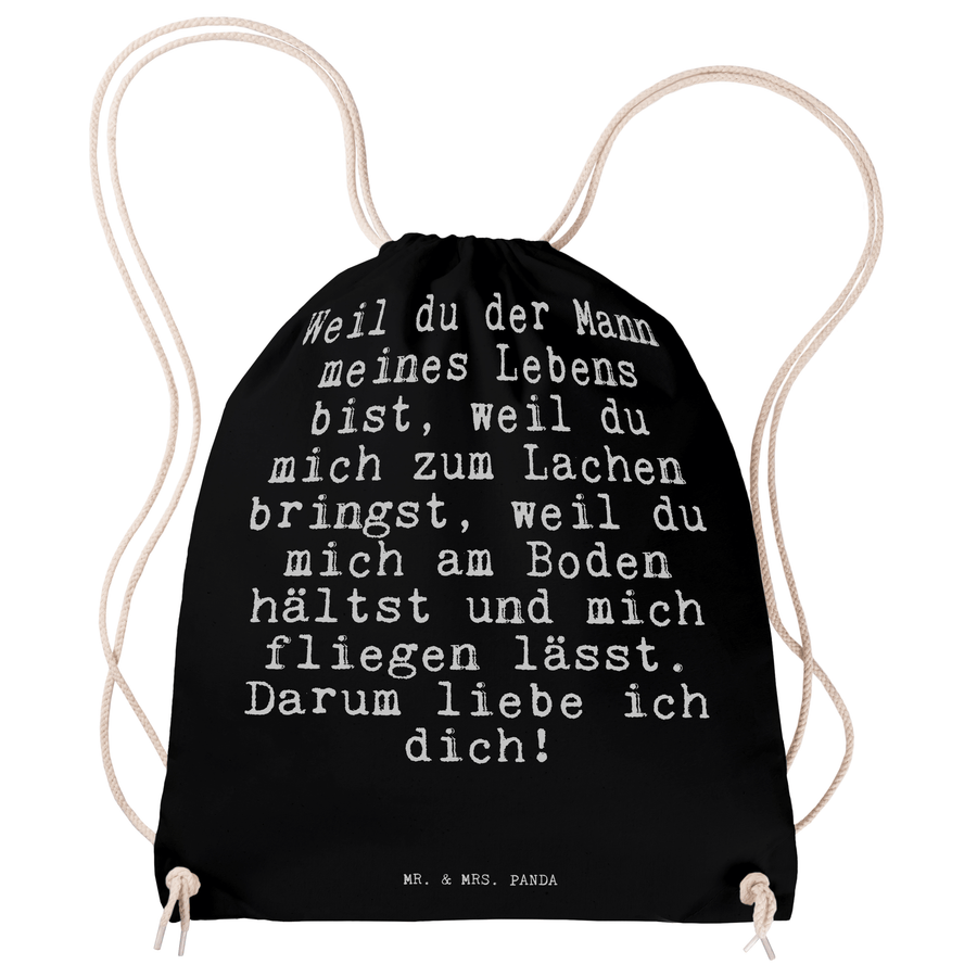 Sportbeutel Sprüche und Zitate Weil du der Mann meines Lebens bist, weil du mich zum Lachen bringst, weil du mich am Boden hältst und mich fliegen lässt. Darum liebe ich dich! - Schwarz