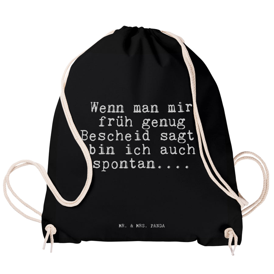 Sportbeutel Sprüche und Zitate Wenn man mir früh genug Bescheid sagt, bin ich auch spontan.... - Schwarz