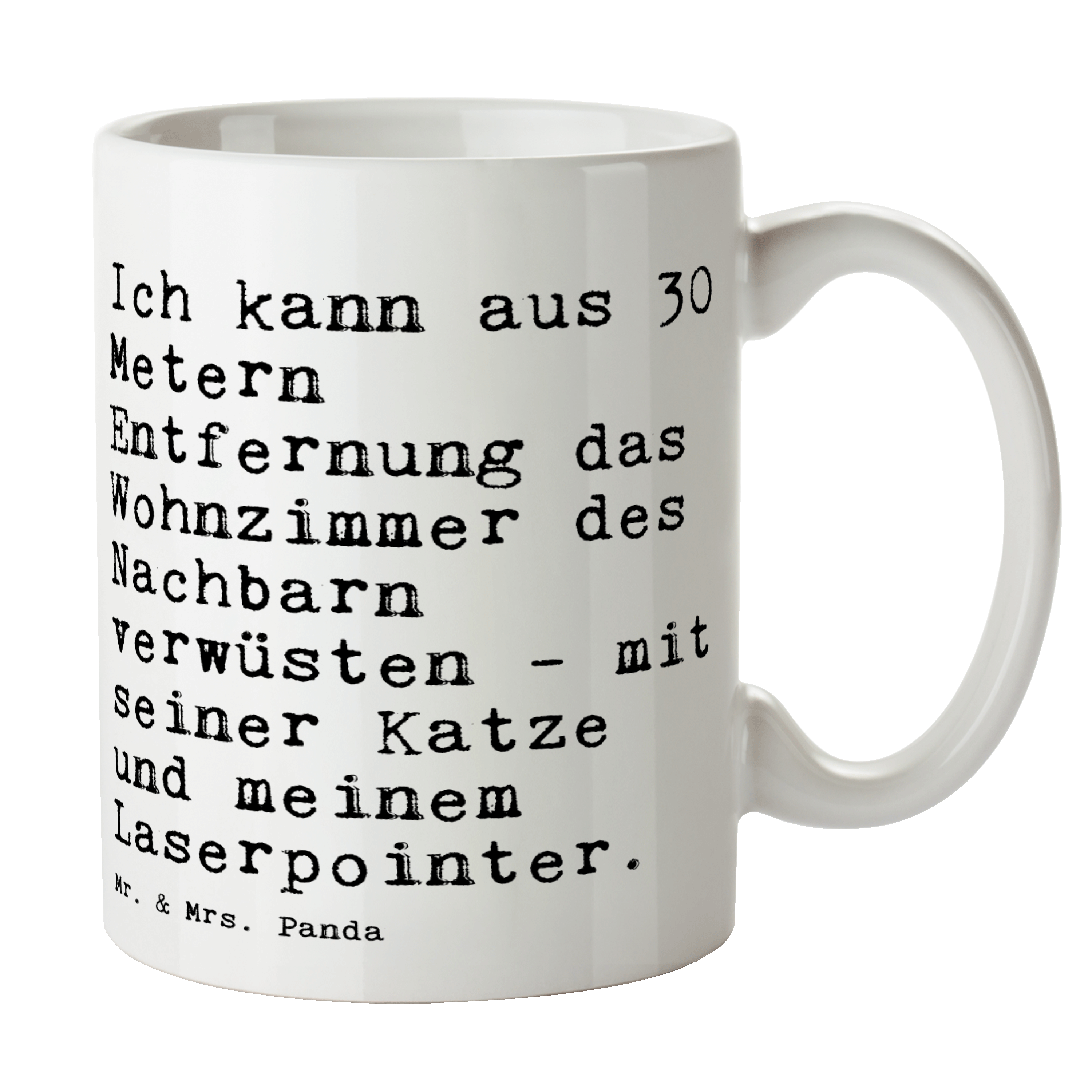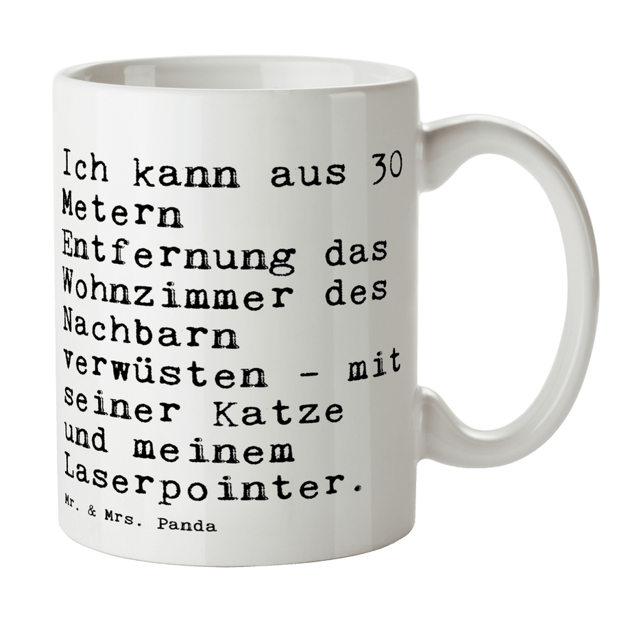 Tasse Sprüche und Zitate Ich kann aus 30 Metern Entfernung das Wohnzimmer des Nachbarn verwüsten - mit seiner Katze und meinem Laserpointer.
