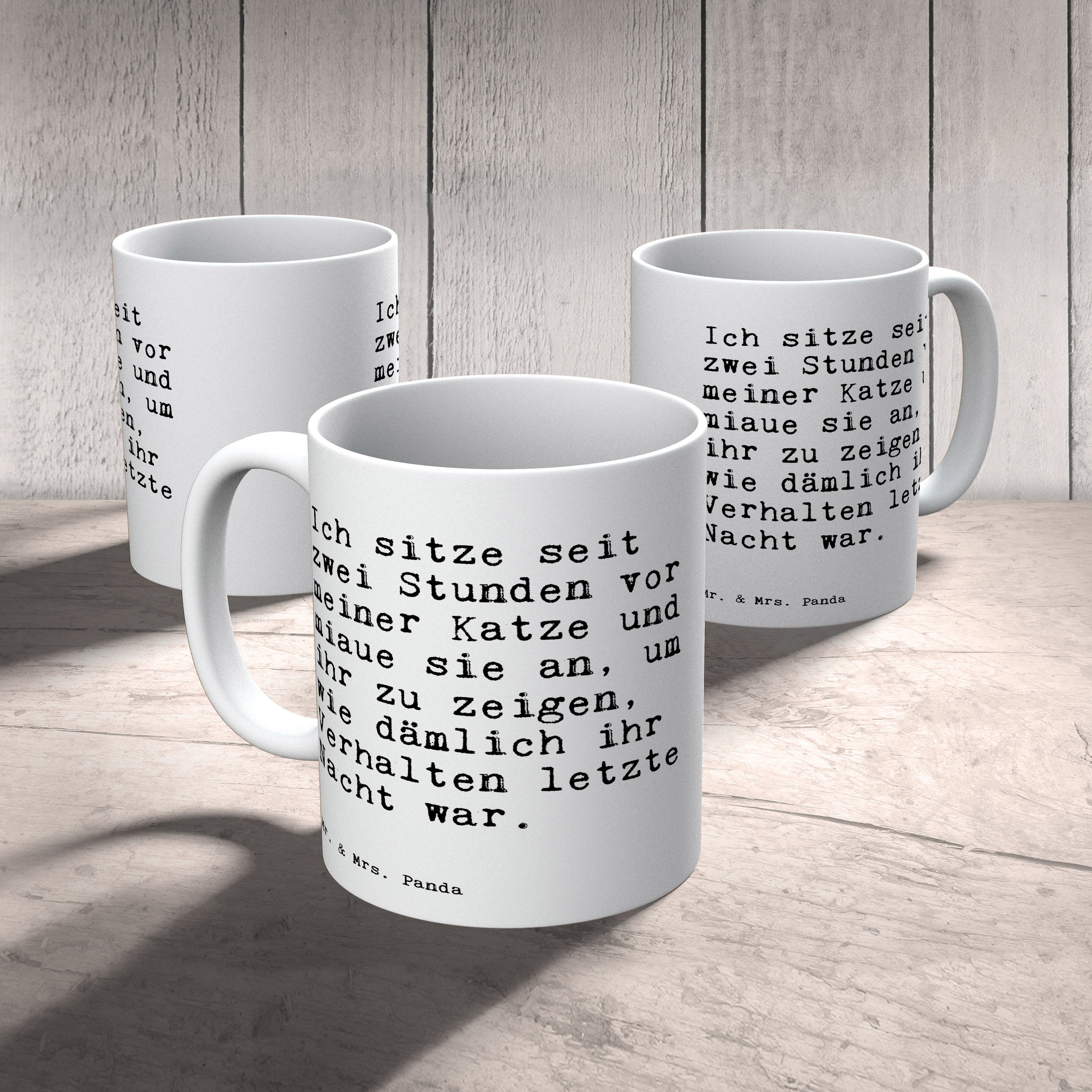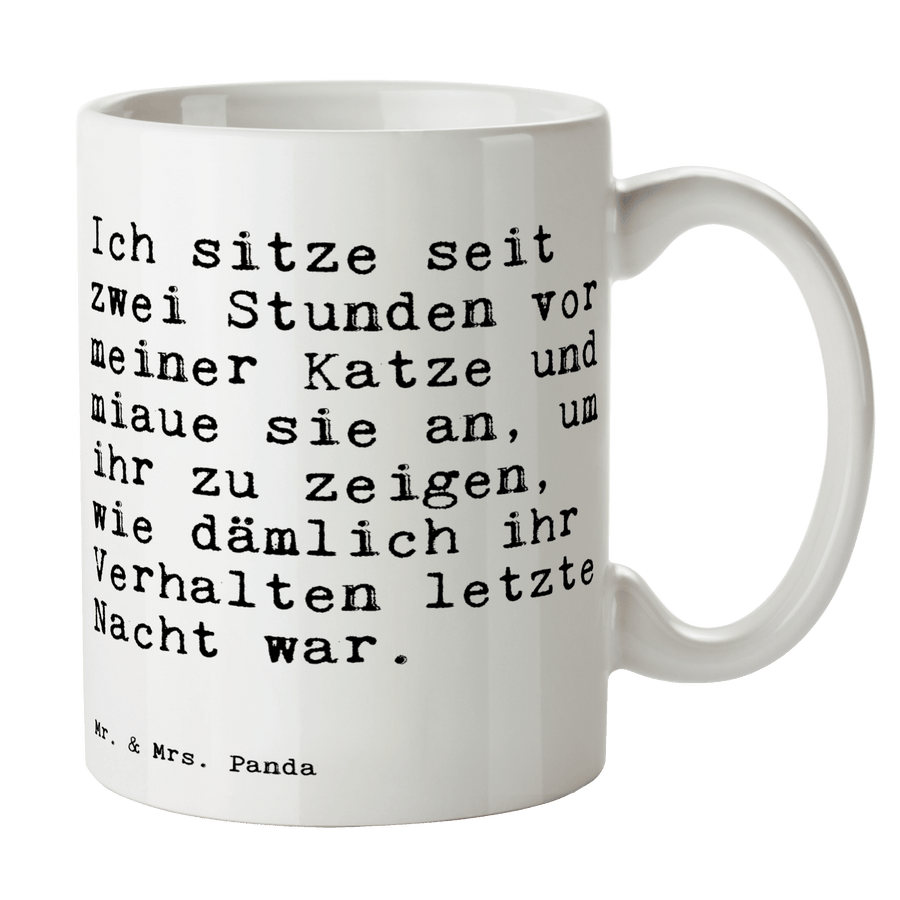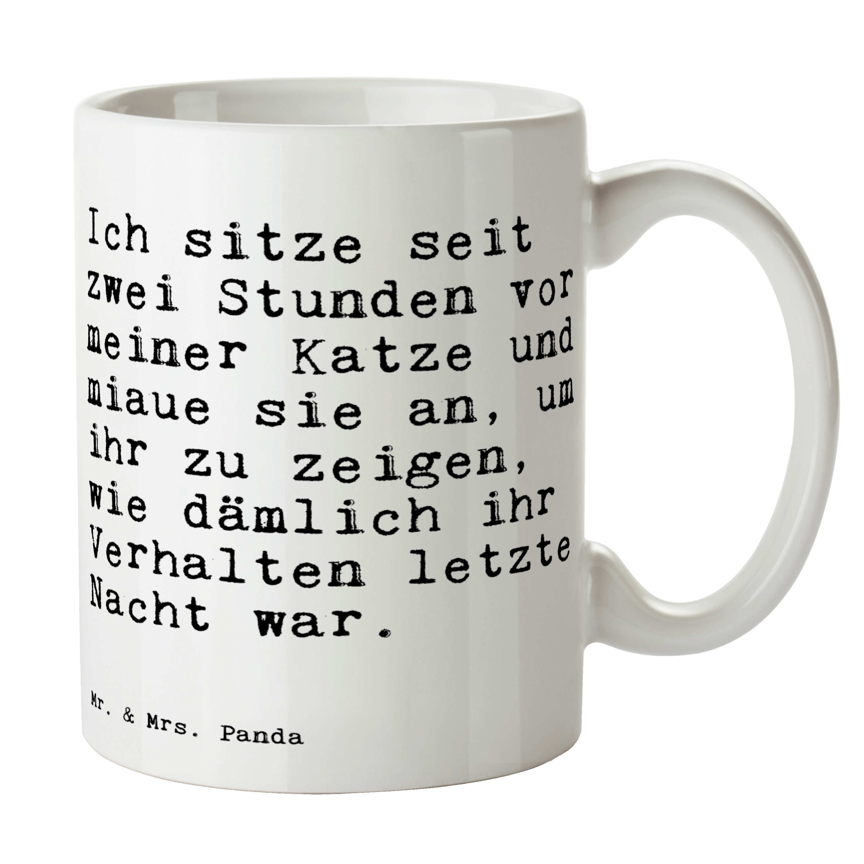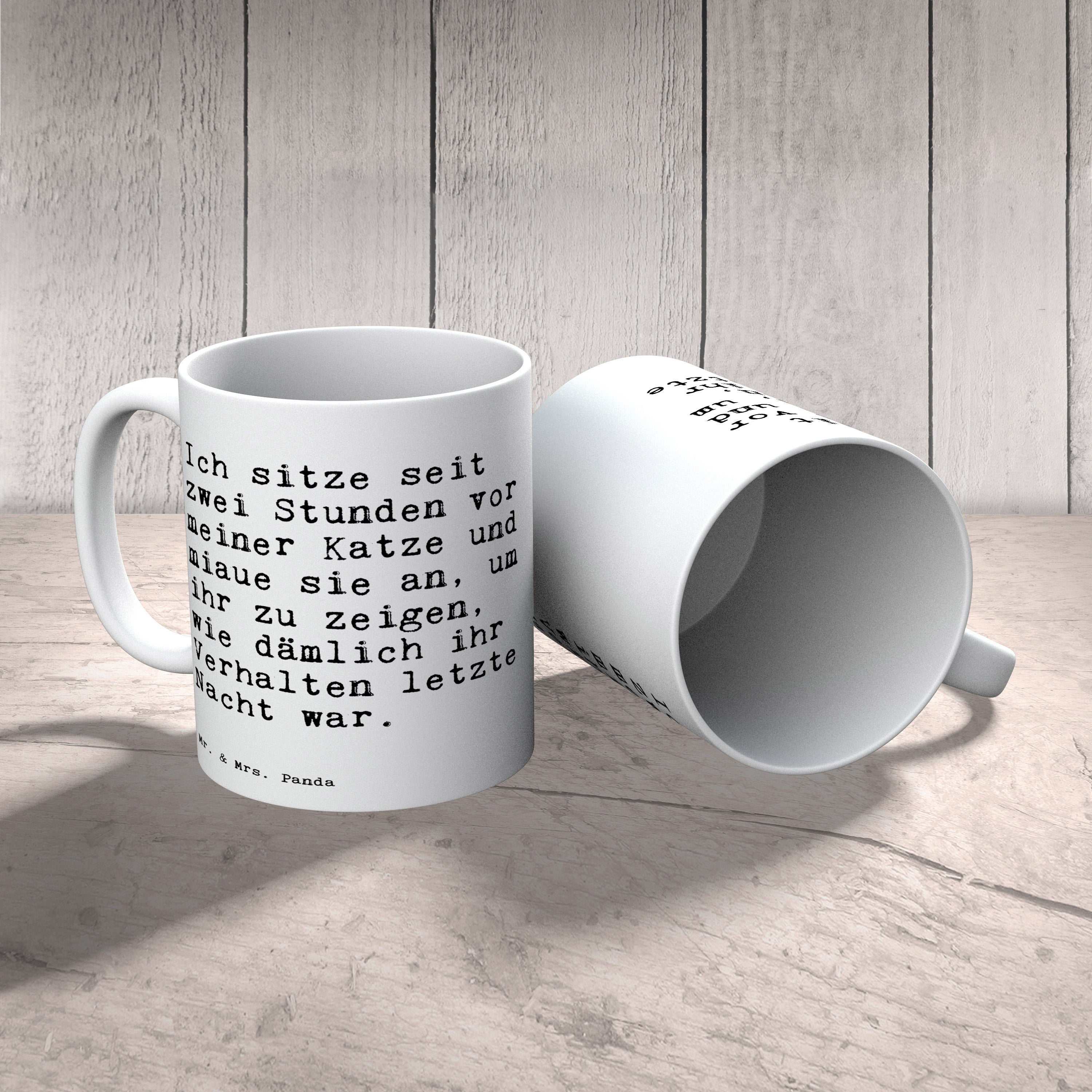 Tasse Sprüche und Zitate Ich sitze seit zwei Stunden vor meiner Katze und miaue sie an, um ihr zu zeigen, wie dämlich ihr Verhalten letzte Nacht war.