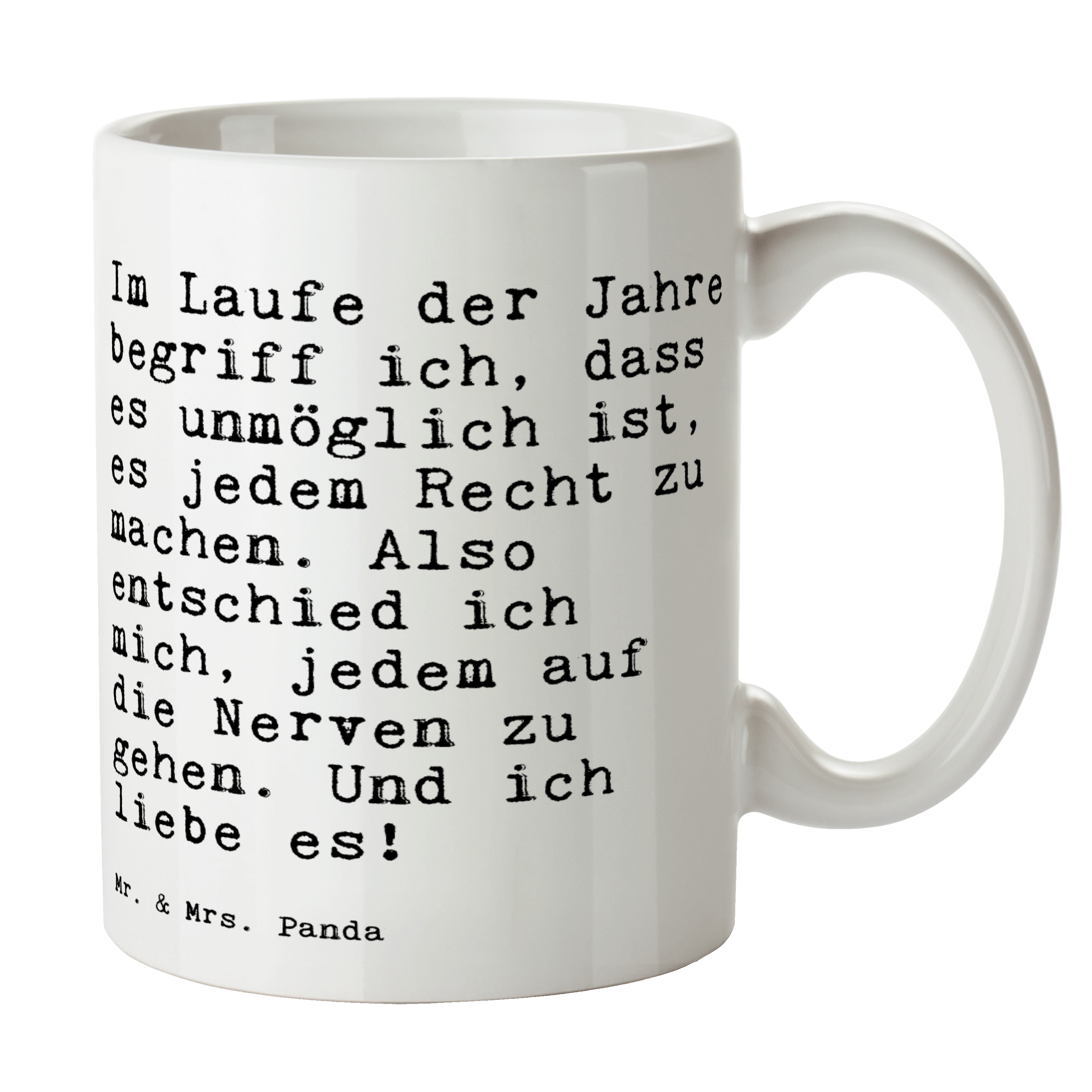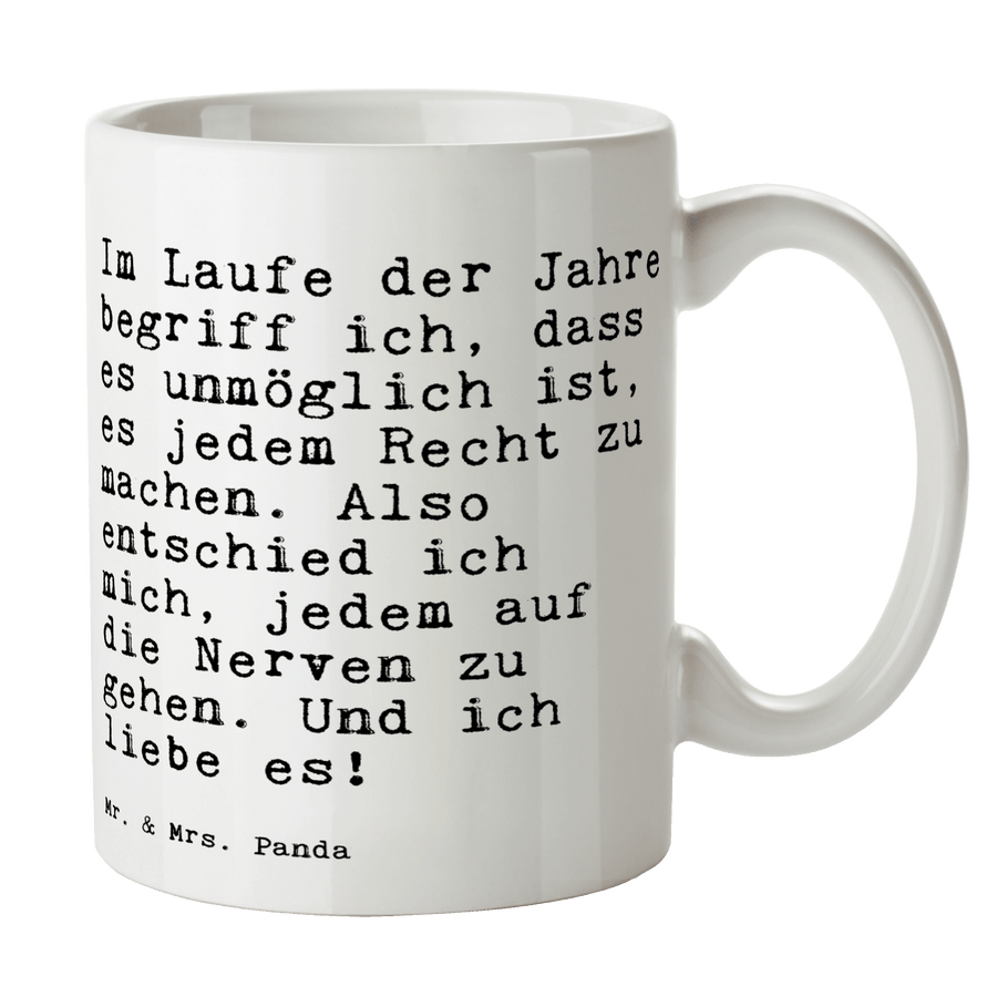 Tasse Sprüche und Zitate Im Laufe der Jahre begriff ich, dass es unmöglich ist, es jedem Recht zu machen. Also entschied ich mich, jedem auf die Nerven zu gehen. Und ich liebe es!