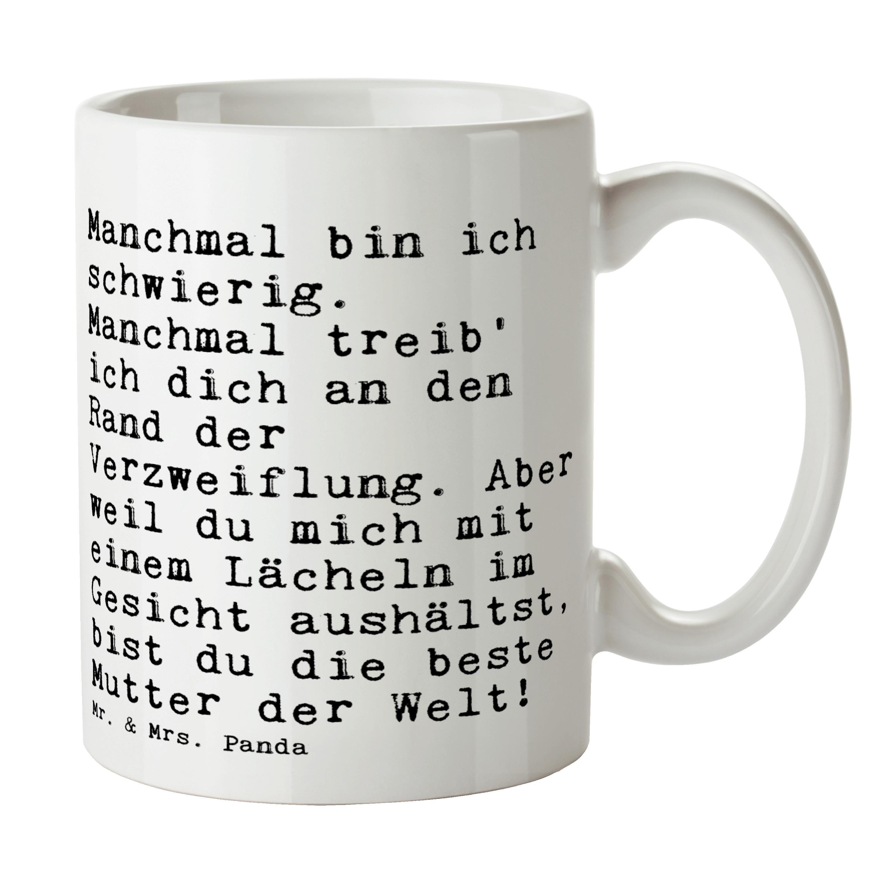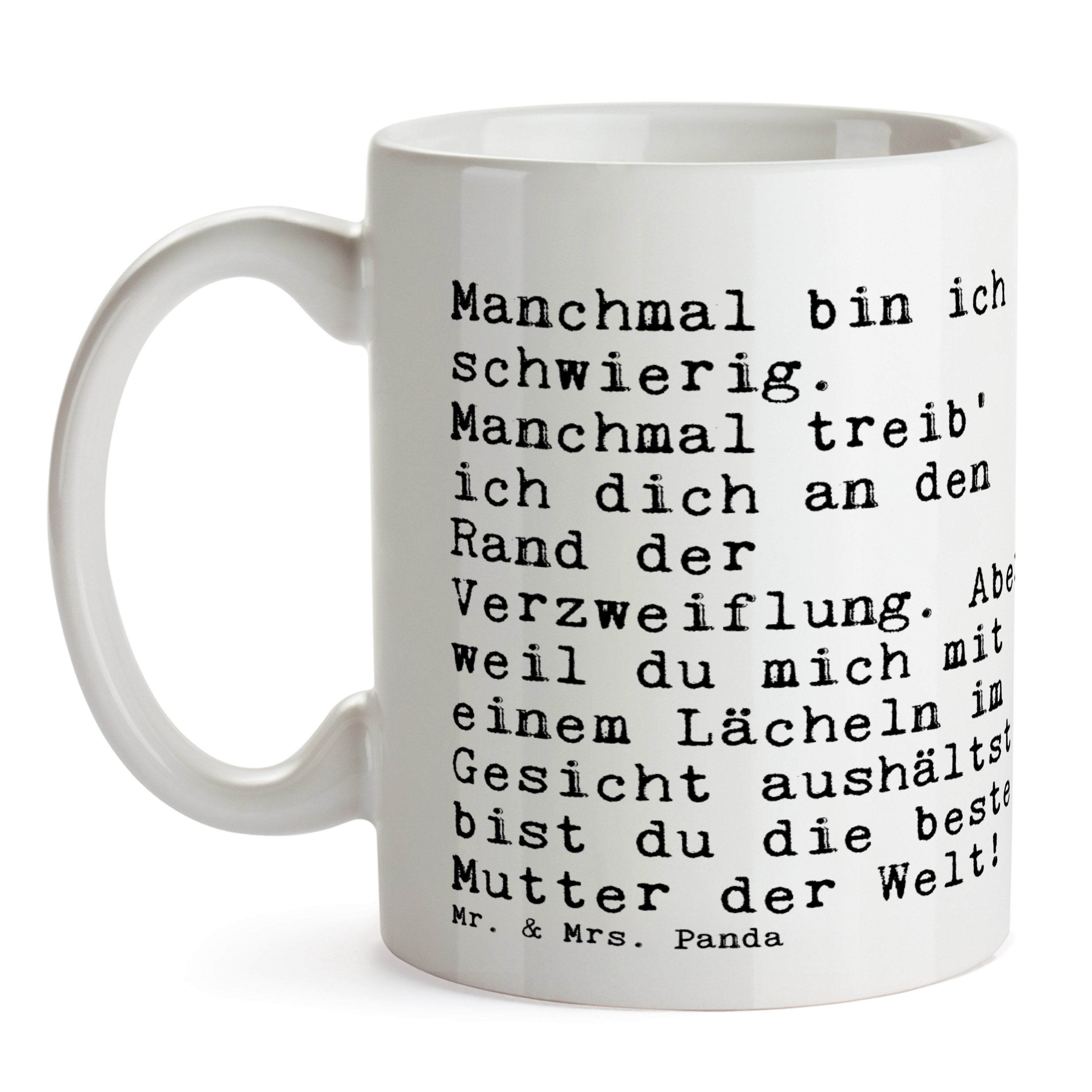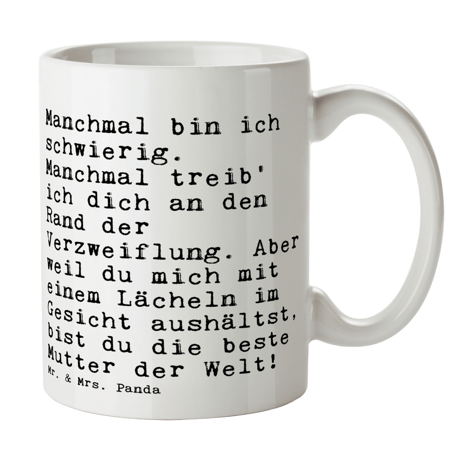 Tasse Sprüche und Zitate Manchmal bin ich schwierig. Manchmal treib' ich dich an den Rand der Verzweiflung. Aber weil du mich mit einem Lächeln im Gesicht aushältst, bist du die beste Mutter der Welt!