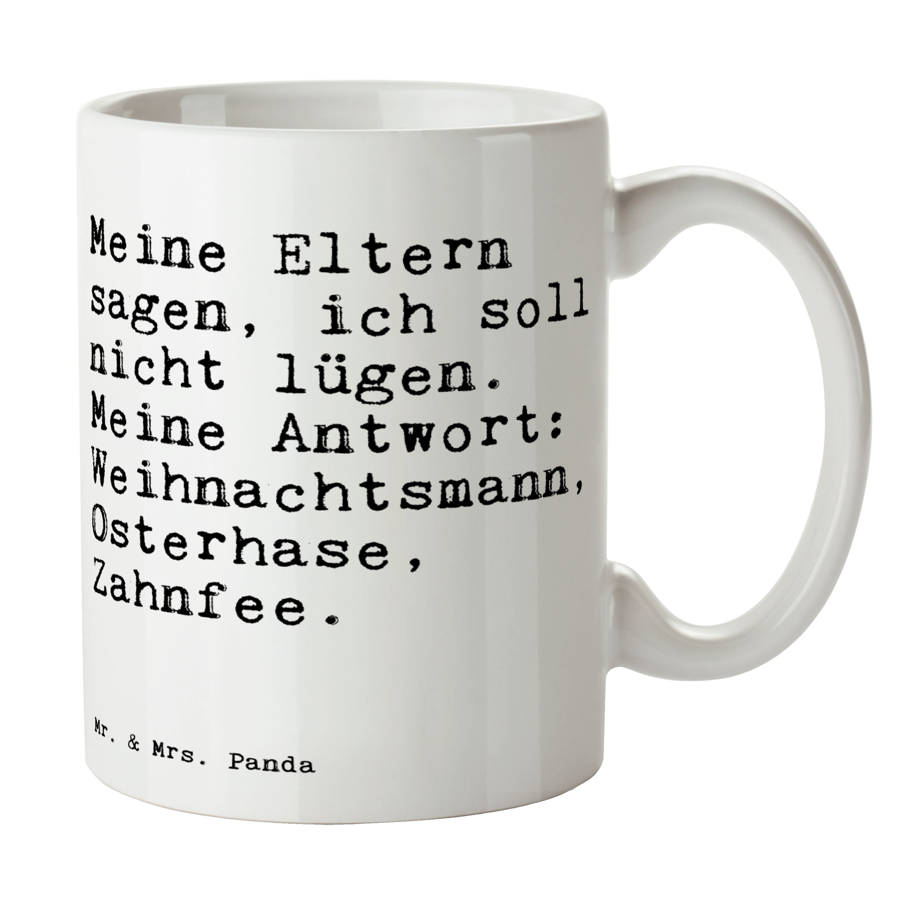 Tasse Sprüche und Zitate Meine Eltern sagen, ich soll nicht lügen. Meine Antwort: Weihnachtsmann, Osterhase, Zahnfee.