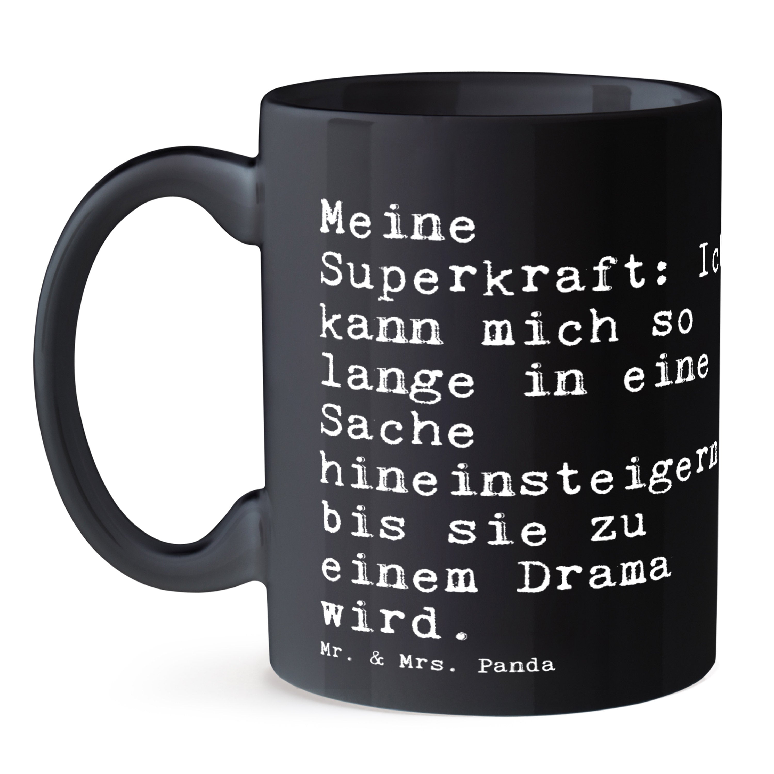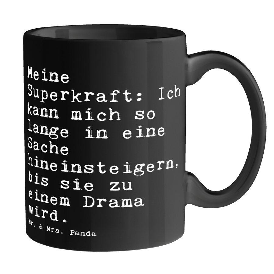 Tasse Sprüche und Zitate Meine Superkraft: Ich kann mich so lange in eine Sache hineinsteigern, bis sie zu einem Drama wird.