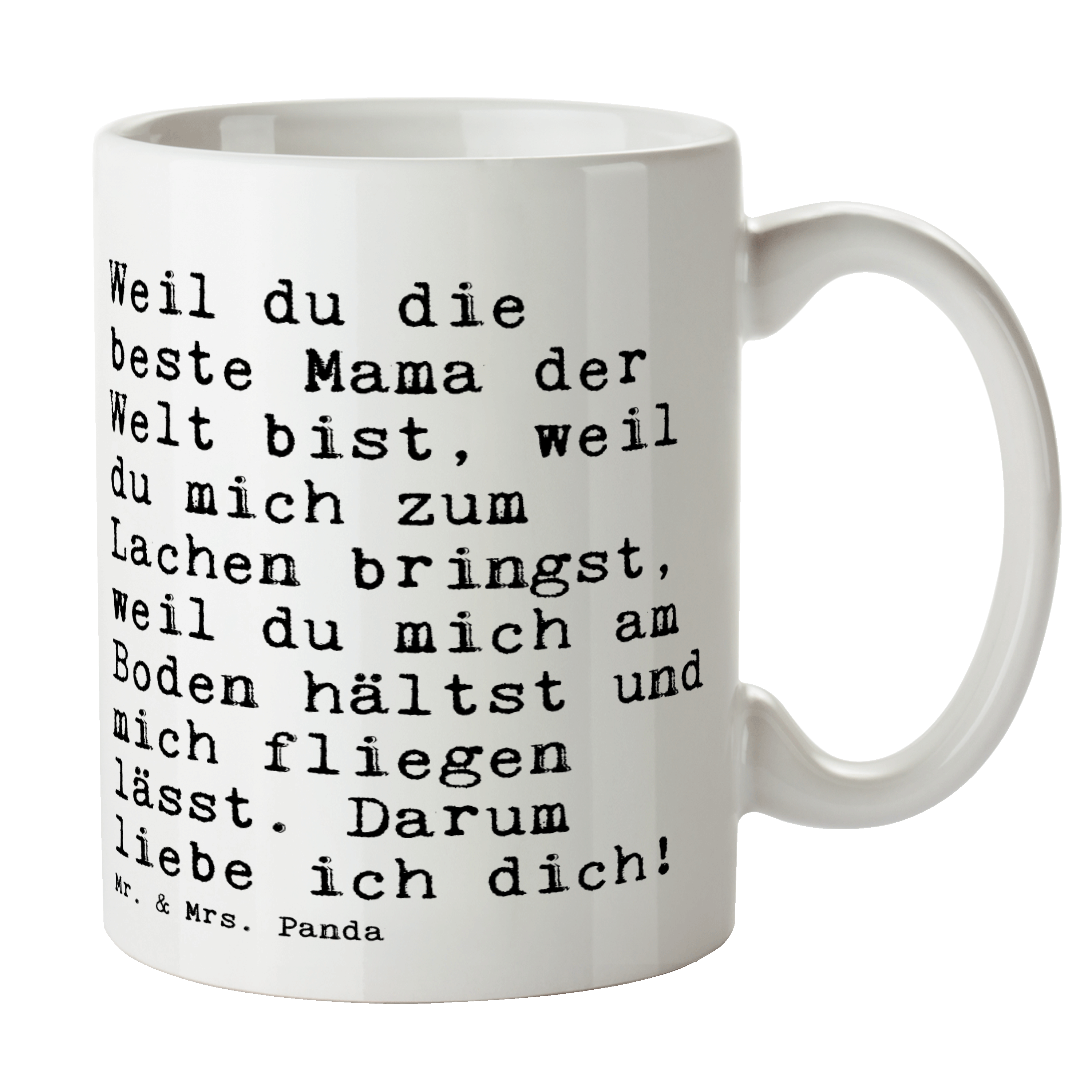 Tasse Sprüche und Zitate Weil du die beste Mama der Welt bist, weil du mich zum Lachen bringst, weil du mich am Boden hältst und mich fliegen lässt. Darum liebe ich dich!