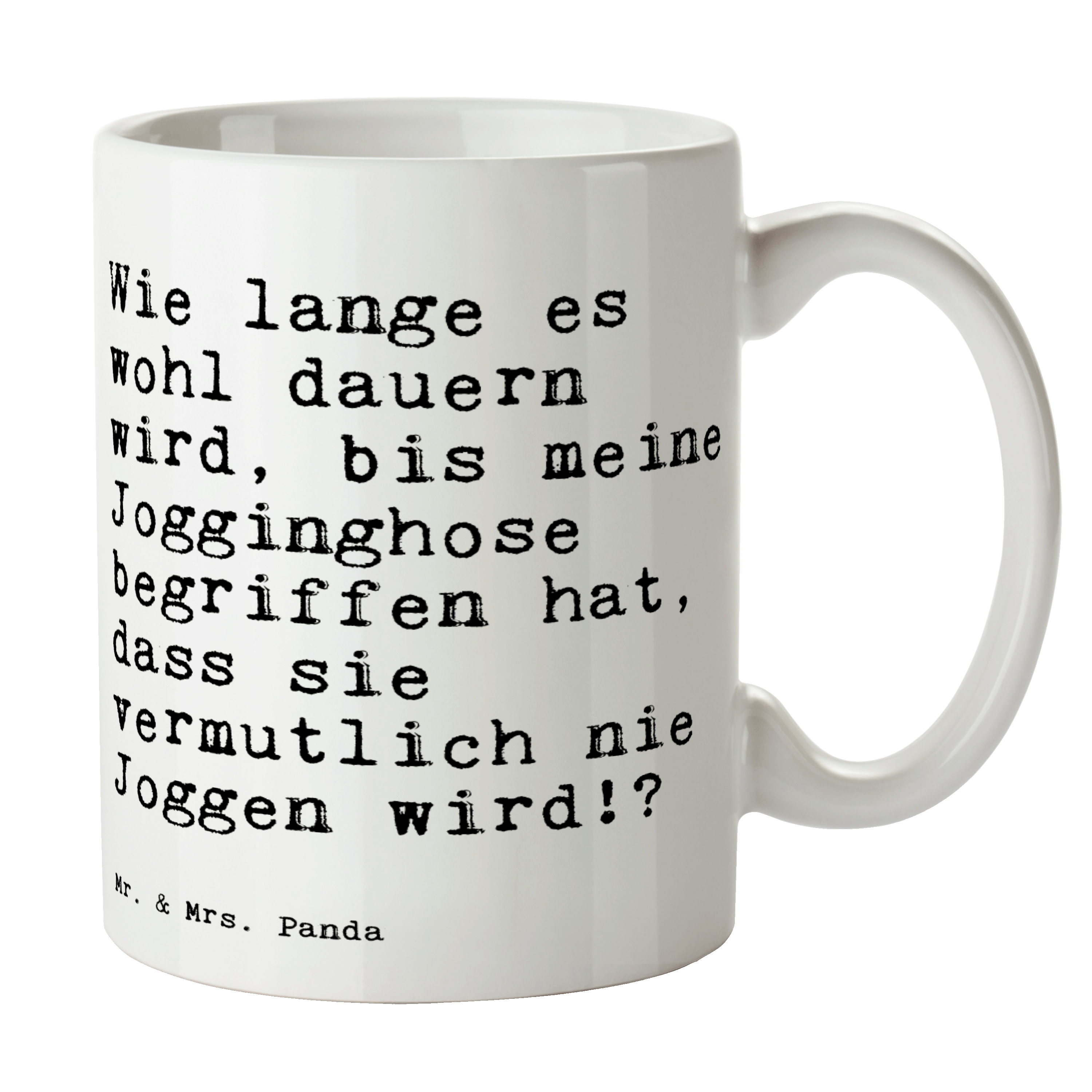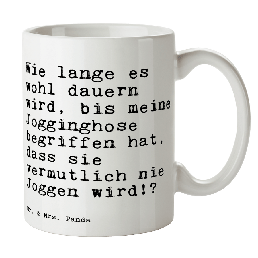 Tasse Sprüche und Zitate Wie lange es wohl dauern wird, bis meine Jogginghose begriffen hat, dass sie vermutlich nie Joggen wird!?