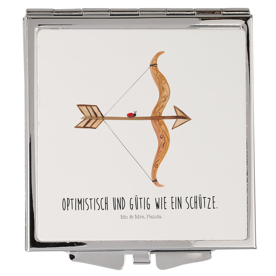 Handtaschenspiegel quadratisch Sternzeichen Schütze - mit Spruch - Weiß