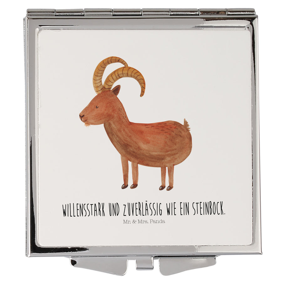 Handtaschenspiegel quadratisch Sternzeichen Steinbock - mit Spruch - Weiß