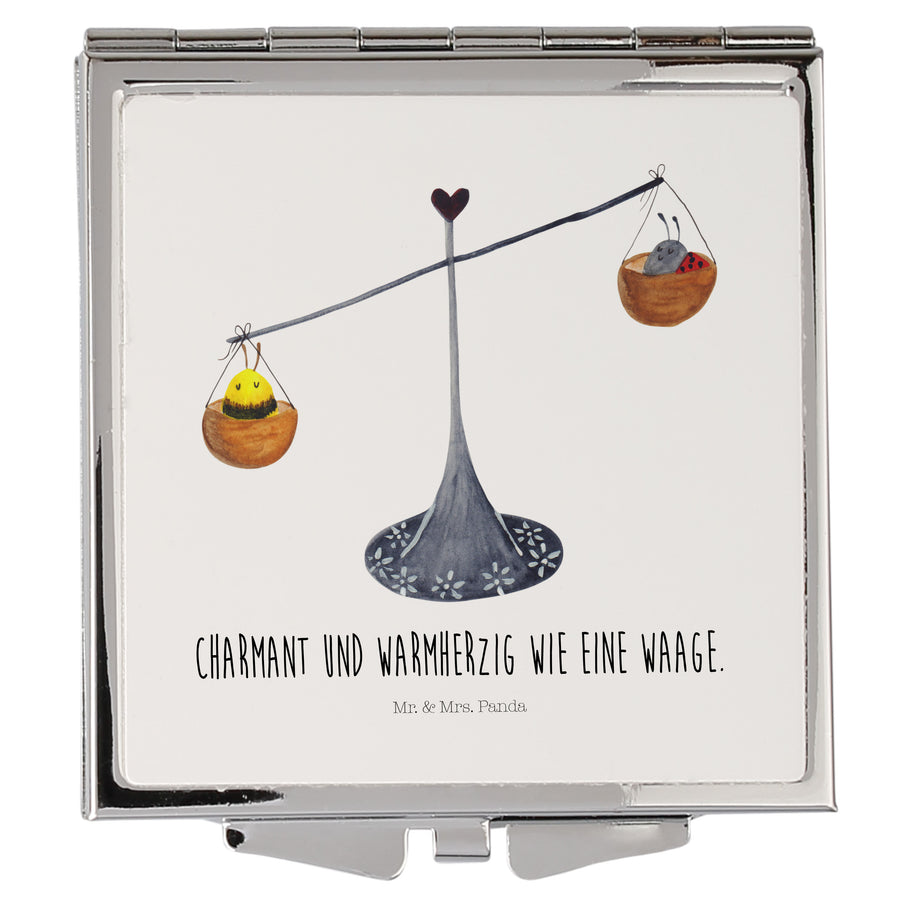 Handtaschenspiegel quadratisch Sternzeichen Waage - mit Spruch - Weiß