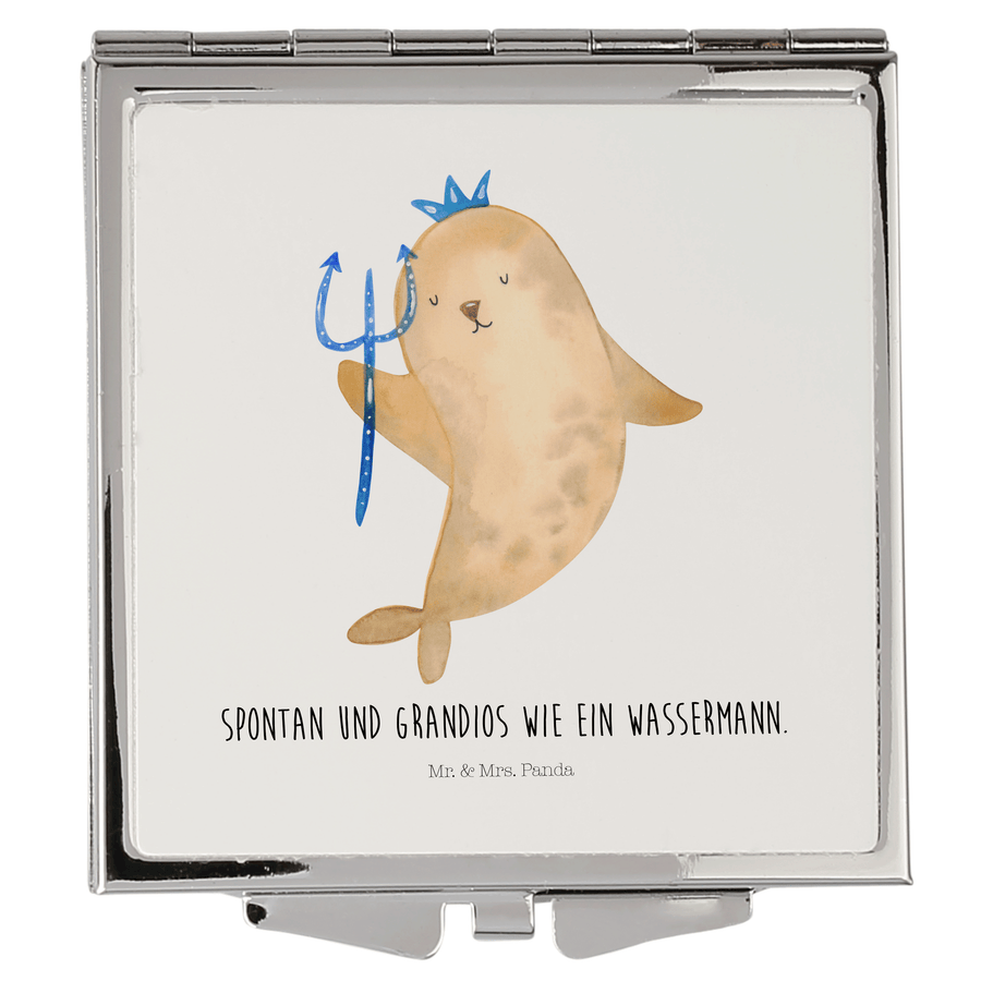 Handtaschenspiegel quadratisch Sternzeichen Wassermann - mit Spruch - Weiß